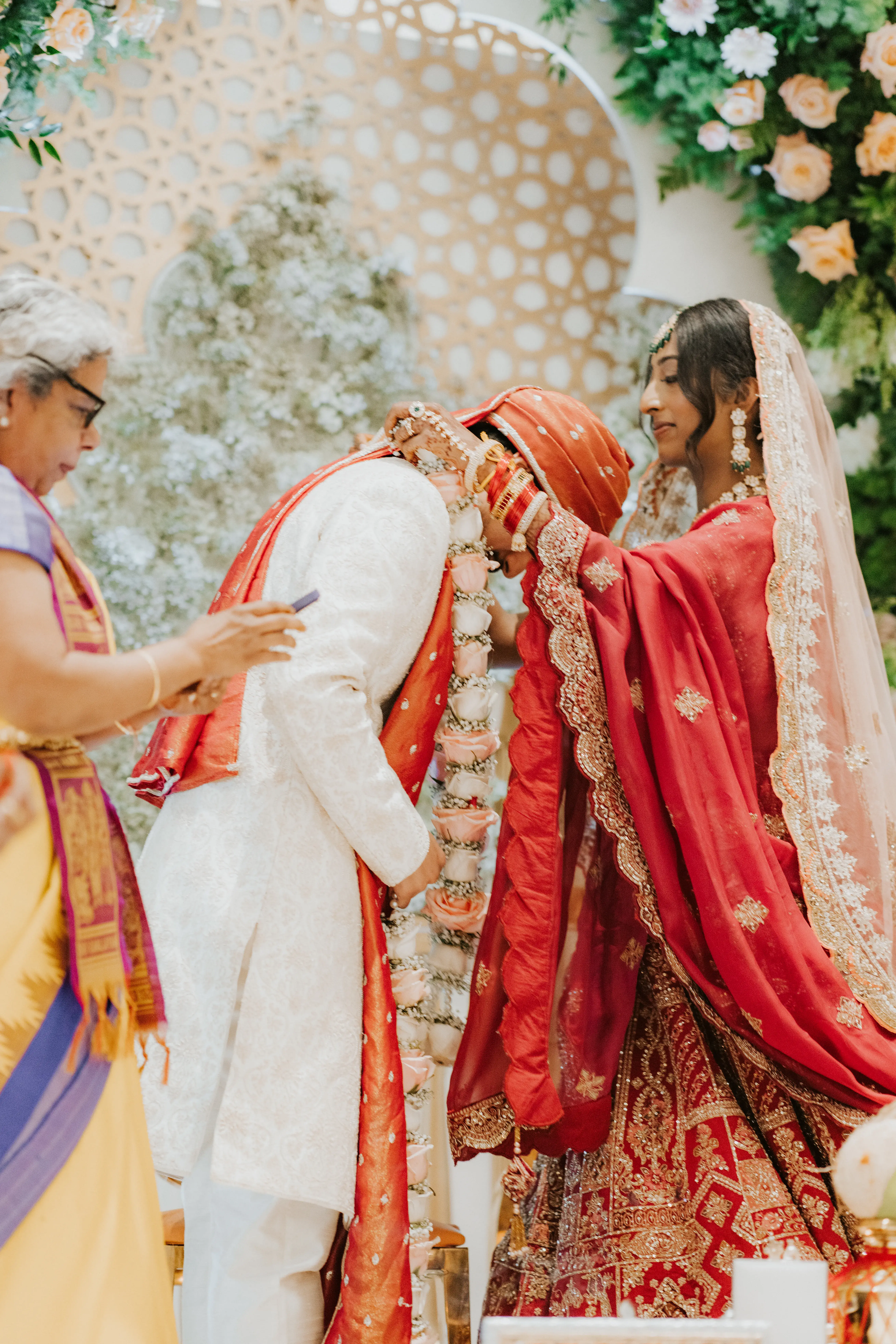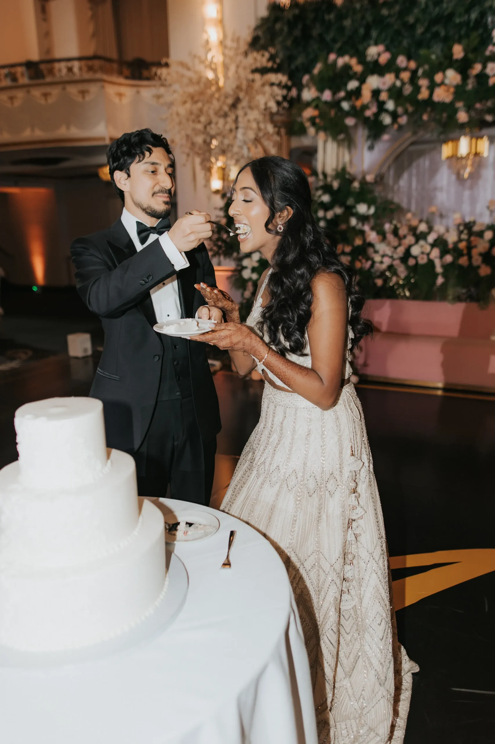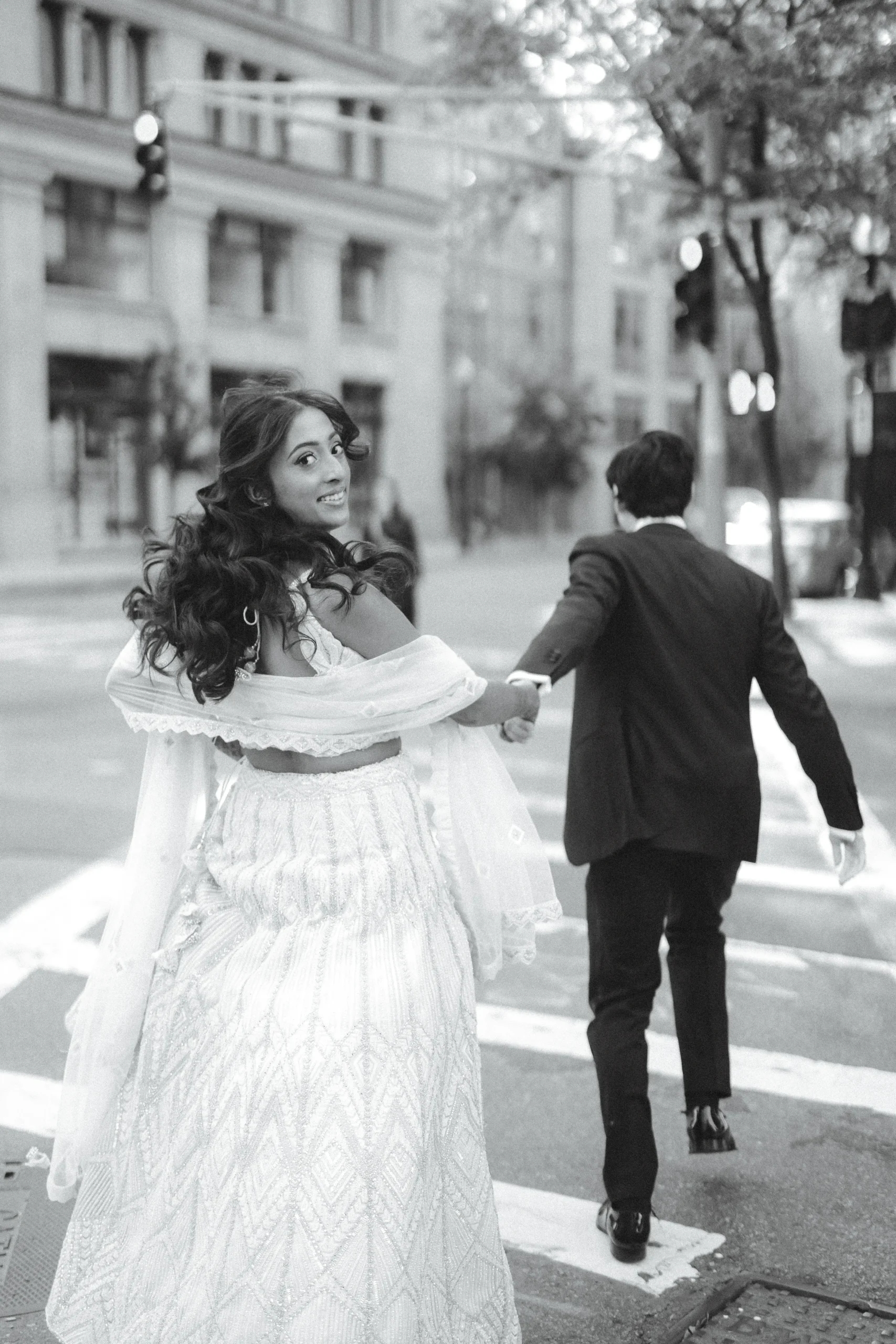 For their ceremony, Akshayaa had worked with her designer to bring in installations from India. Their officiant, the Hindu influencer and educator Ranjani Saigal (The Hindu Grandma) wove together tradition and teaching to officiate a ceremony that was deeply rooted in Hindu practice while also teaching the traditions and practices to a diverse crowd of guests in ways that were full of levity and joy. In the end, they kissed under a shower of fireworks.