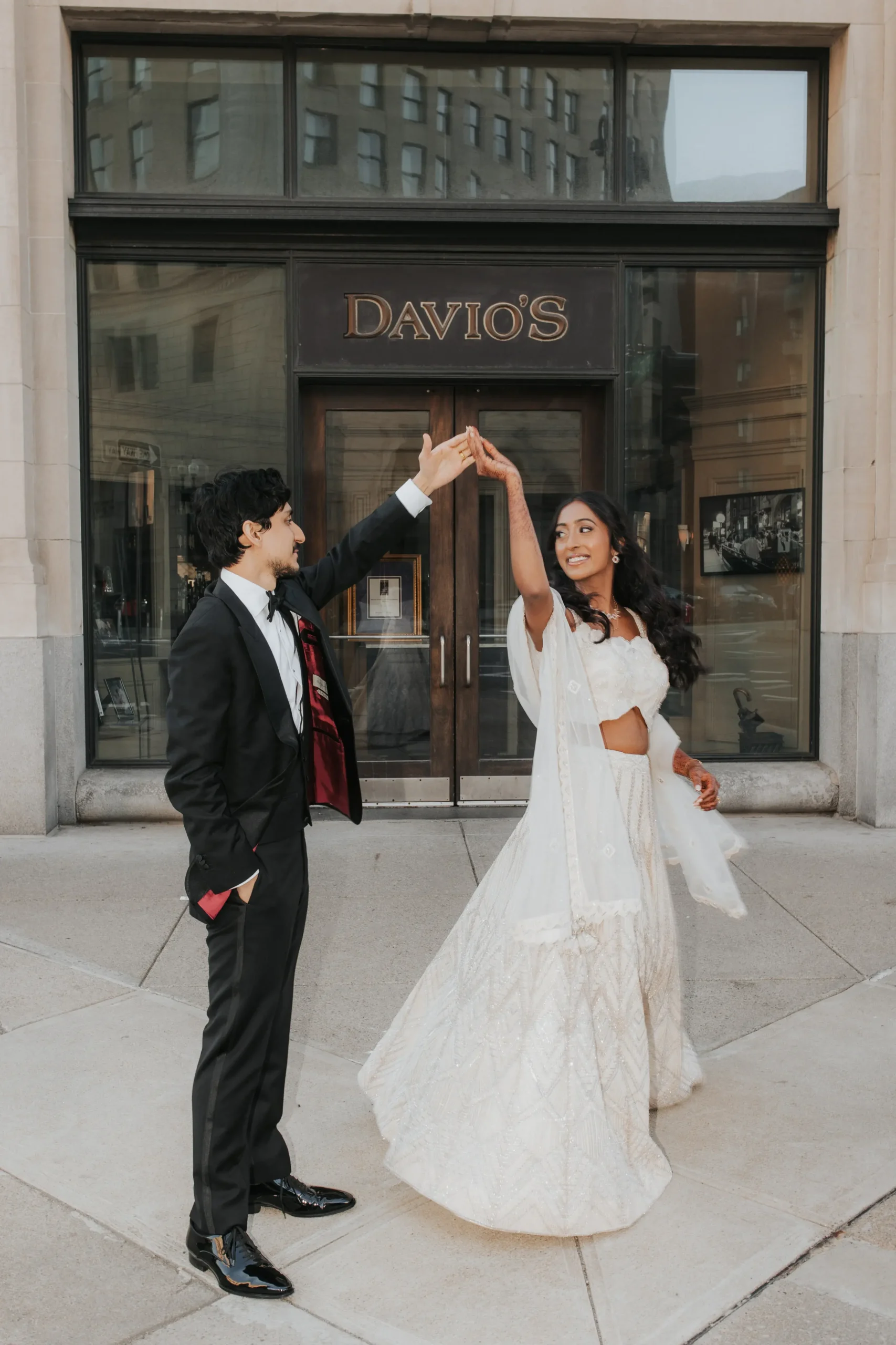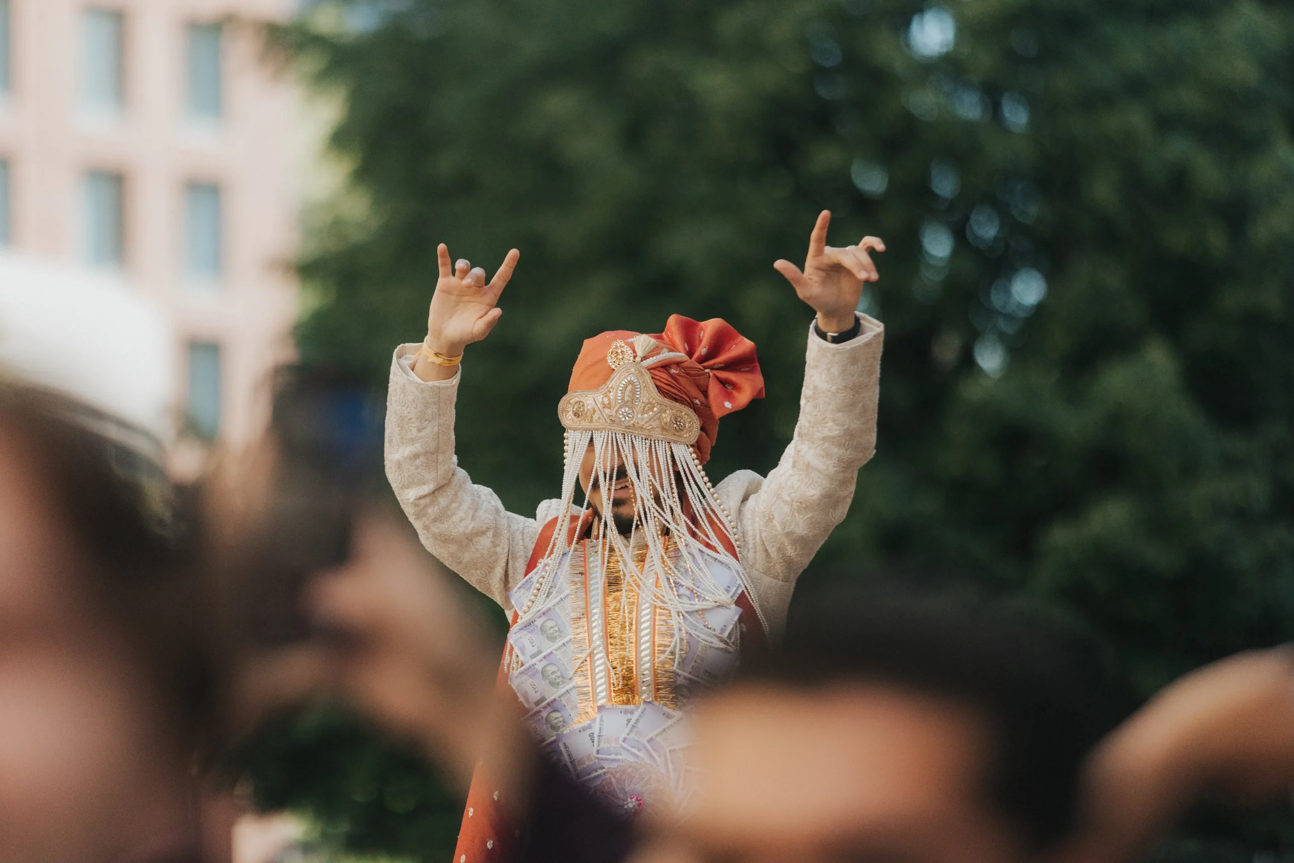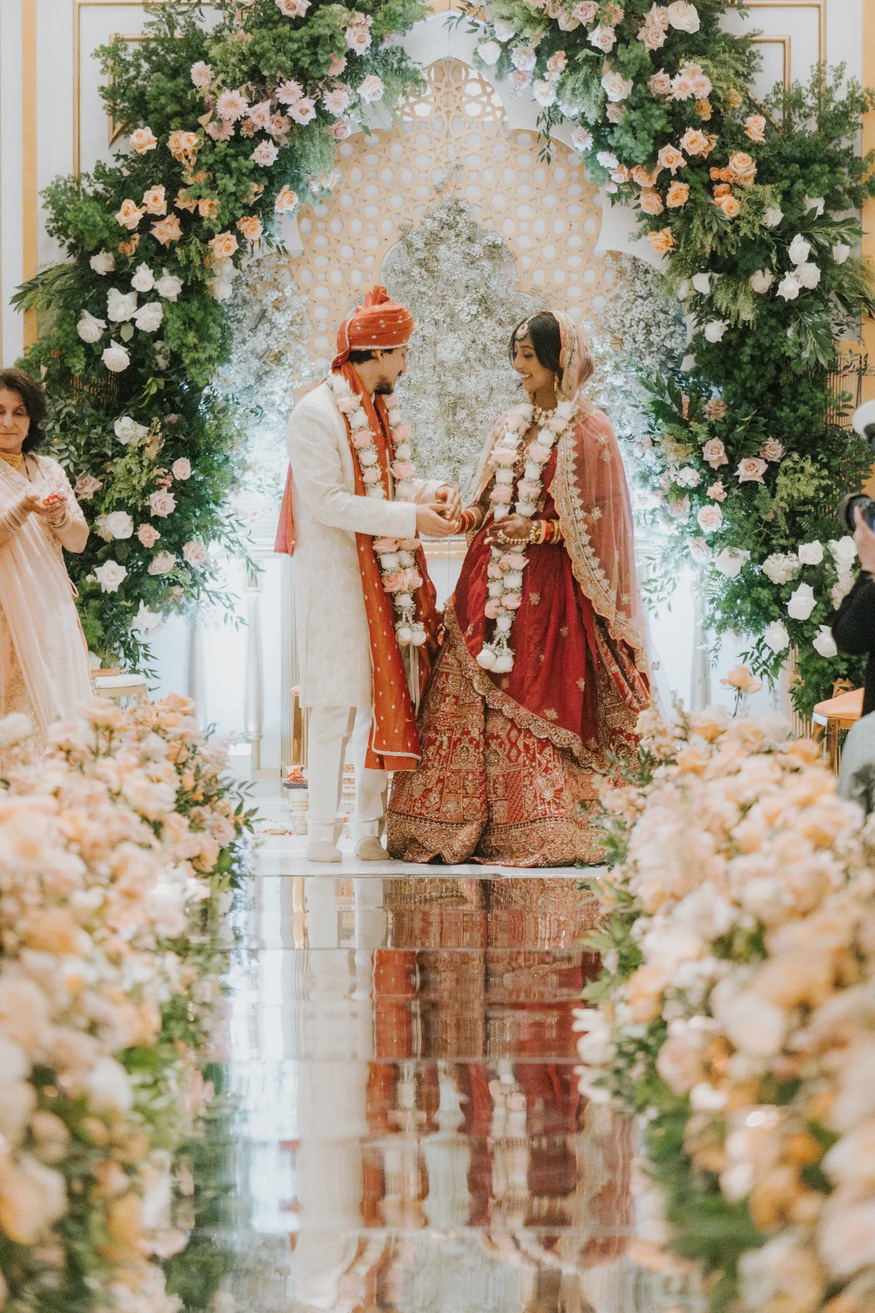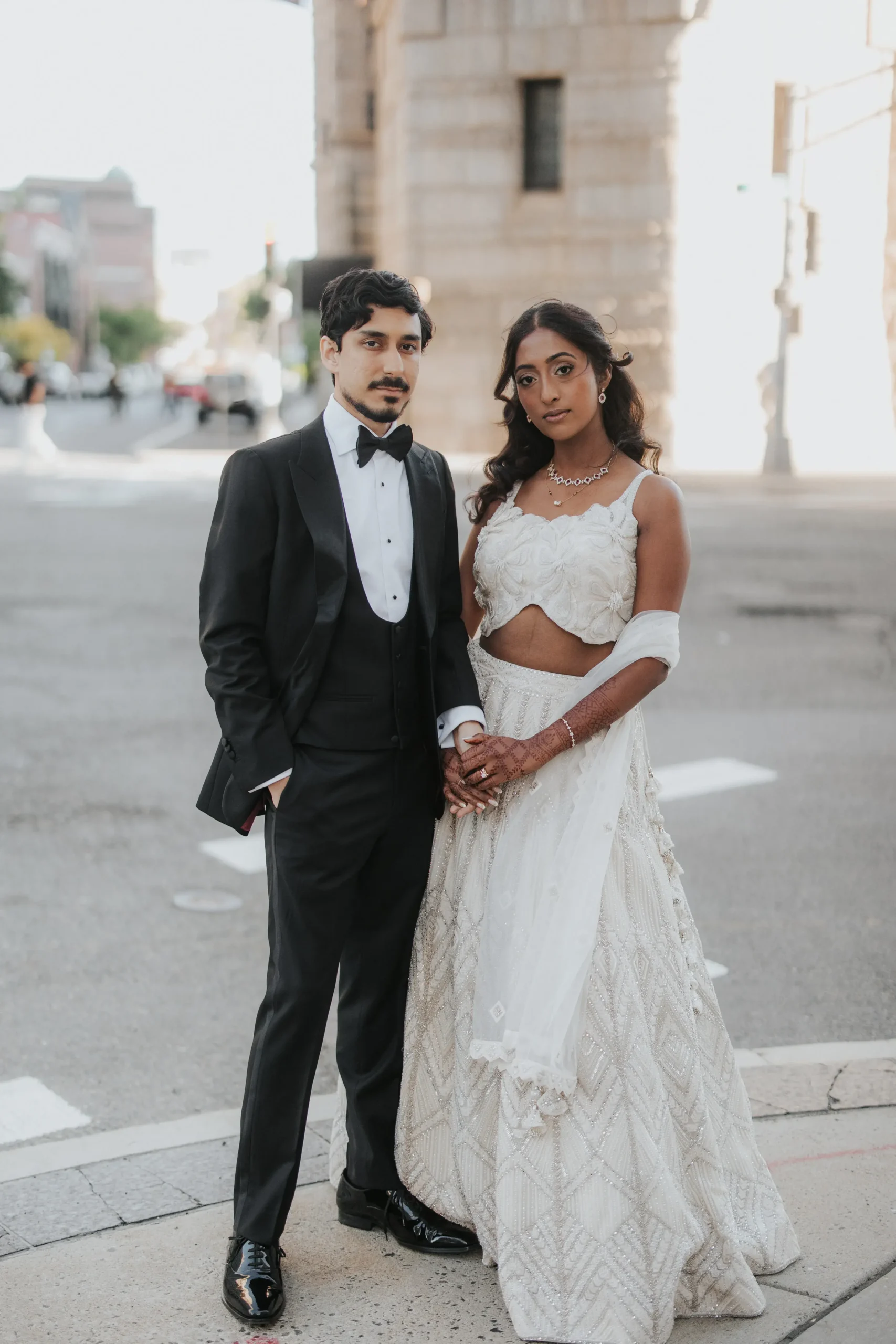 For their ceremony, Akshayaa had worked with her designer to bring in installations from India. Their officiant, the Hindu influencer and educator Ranjani Saigal (The Hindu Grandma) wove together tradition and teaching to officiate a ceremony that was deeply rooted in Hindu practice while also teaching the traditions and practices to a diverse crowd of guests in ways that were full of levity and joy. In the end, they kissed under a shower of fireworks.