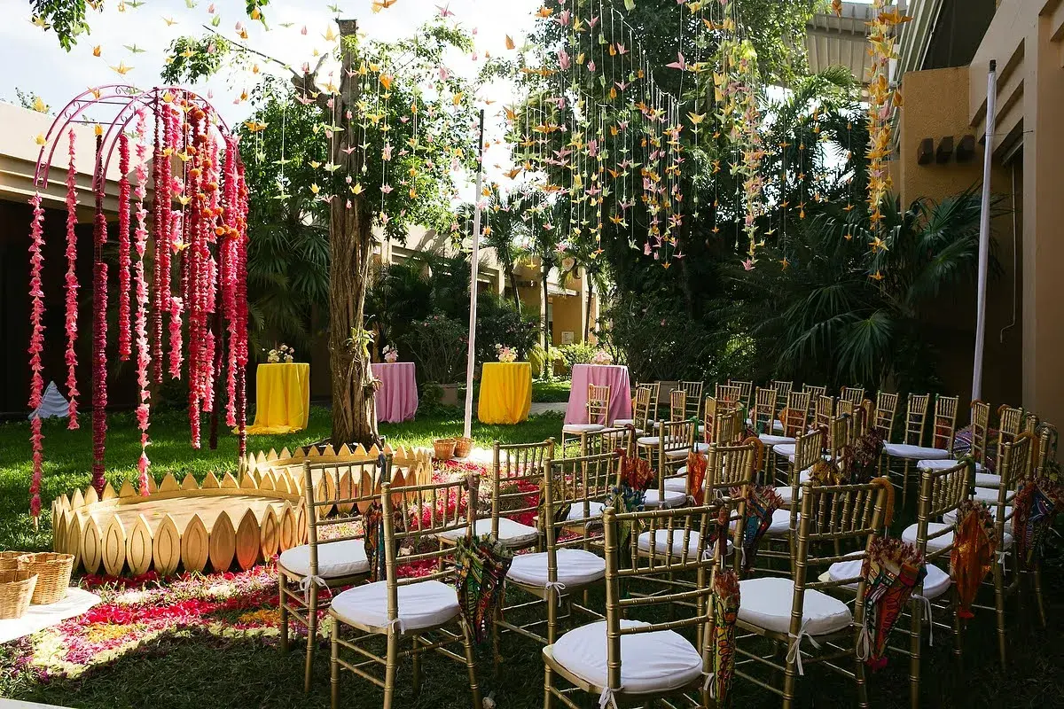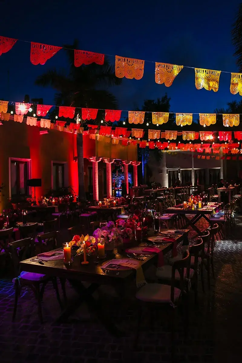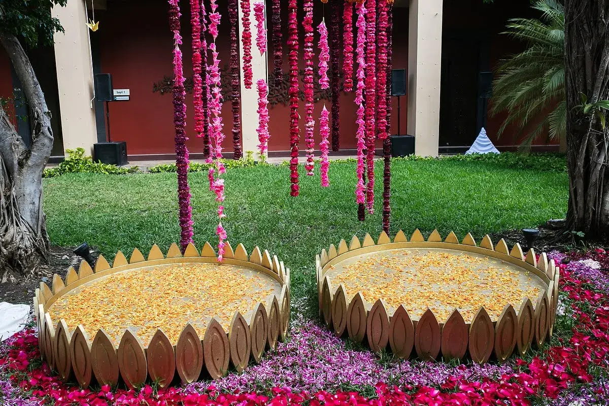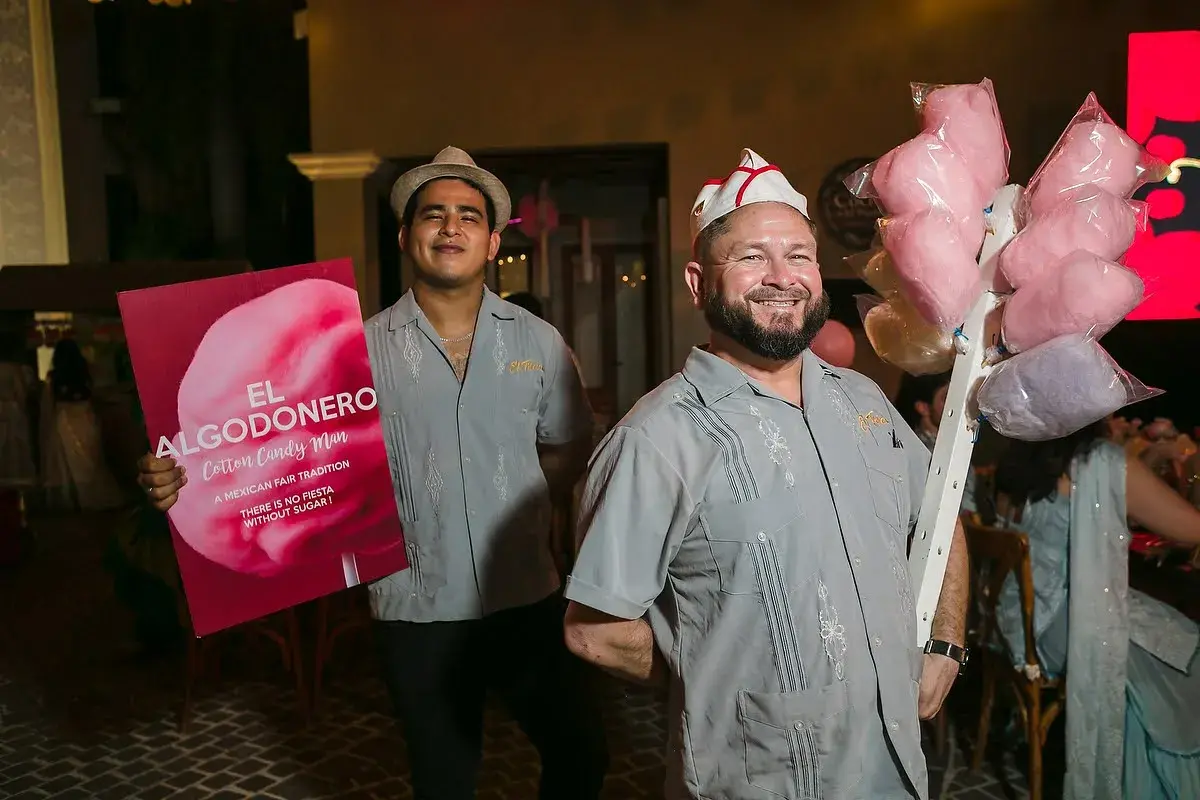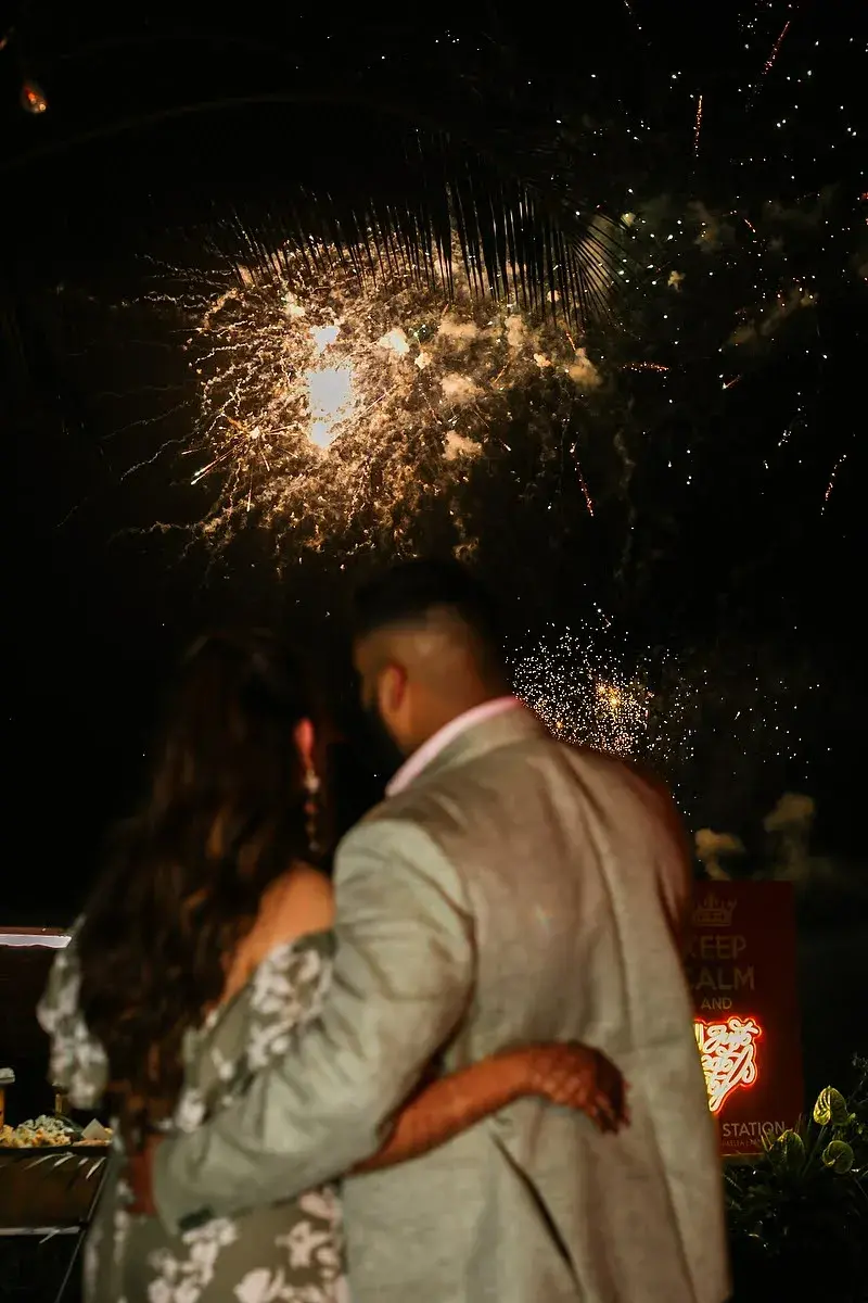 With the vision and guidance of planner Xanath Bañuelos, every detail was a balance of tradition, emotion, and modern flair. The festivities began with a beachside welcome dinner lit by fireworks and fire dancers, followed by a joyful pastel Haldi ceremony, coconuts stamped with their dog’s face, and a Mehendi-Sangeet bursting with color, dance, and handmade details.