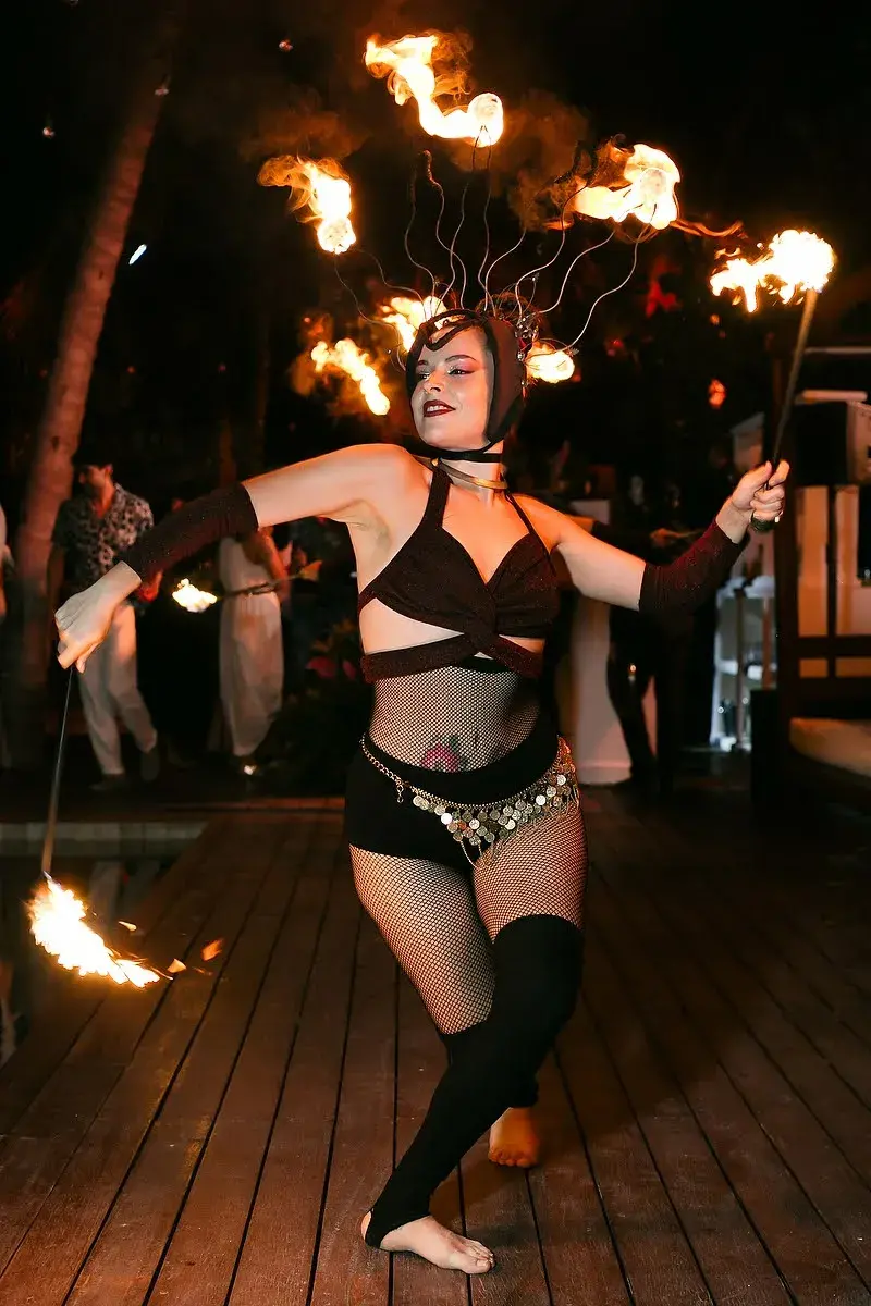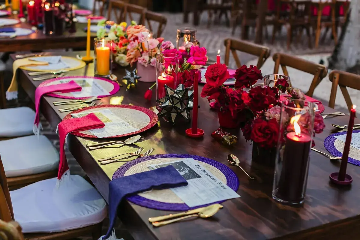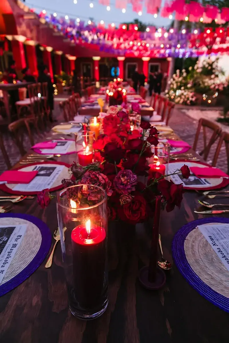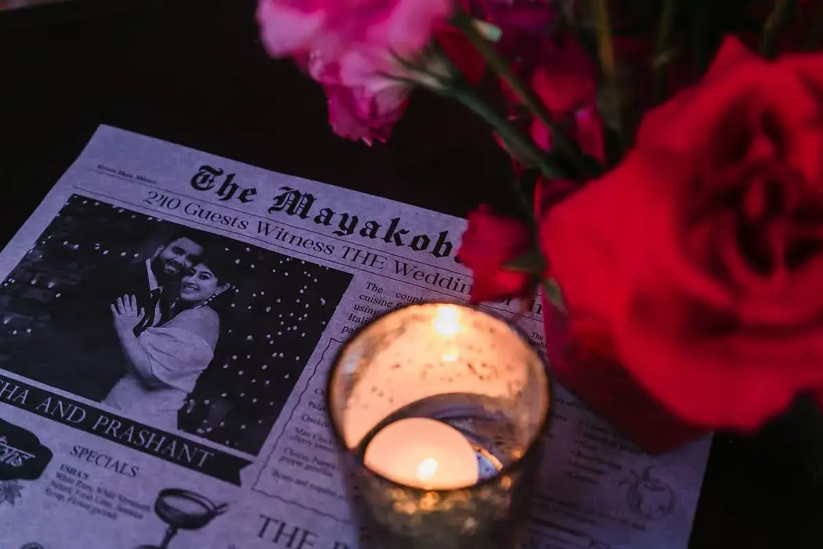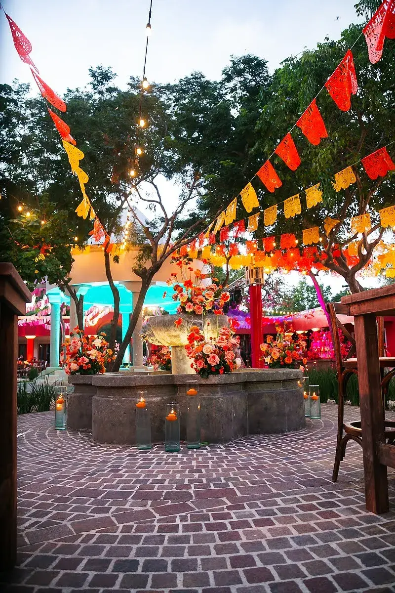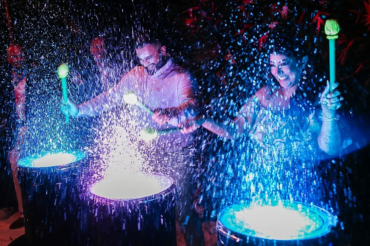 With the vision and guidance of planner Xanath Bañuelos, every detail was a balance of tradition, emotion, and modern flair. The festivities began with a beachside welcome dinner lit by fireworks and fire dancers, followed by a joyful pastel Haldi ceremony, coconuts stamped with their dog’s face, and a Mehendi-Sangeet bursting with color, dance, and handmade details.