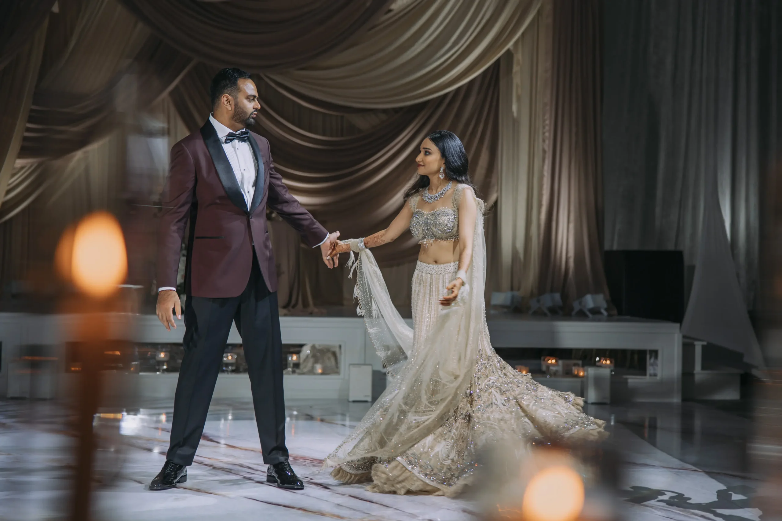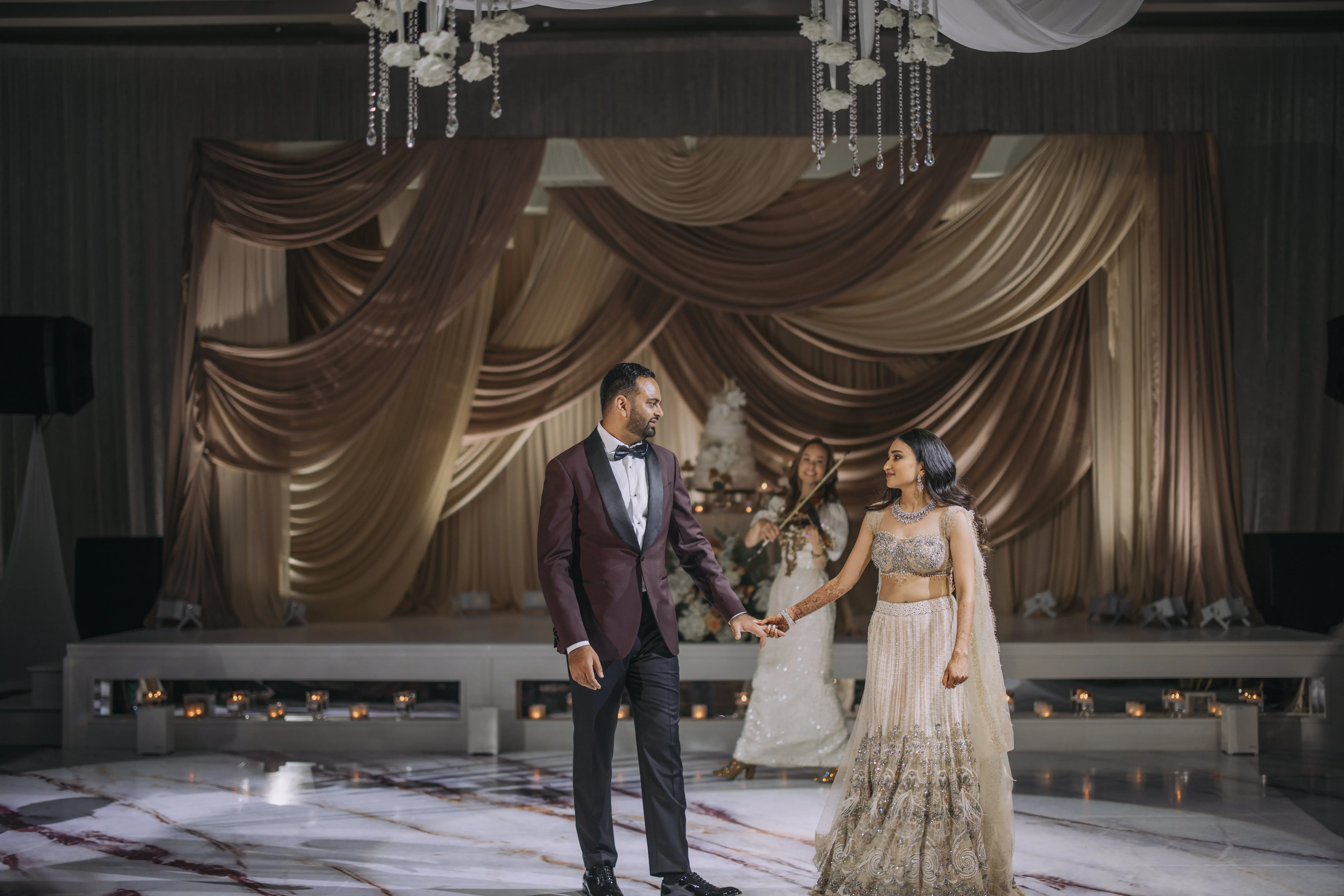 Unique touches like live violin, dhol drummers, custom rituals, and Jasmin’s Mumbai-picked lehenga of Tarun Tahiliani created a multisensory experience that felt personal and timeless. Rather than theatrics, the focus was on elegance, intention, and connection.