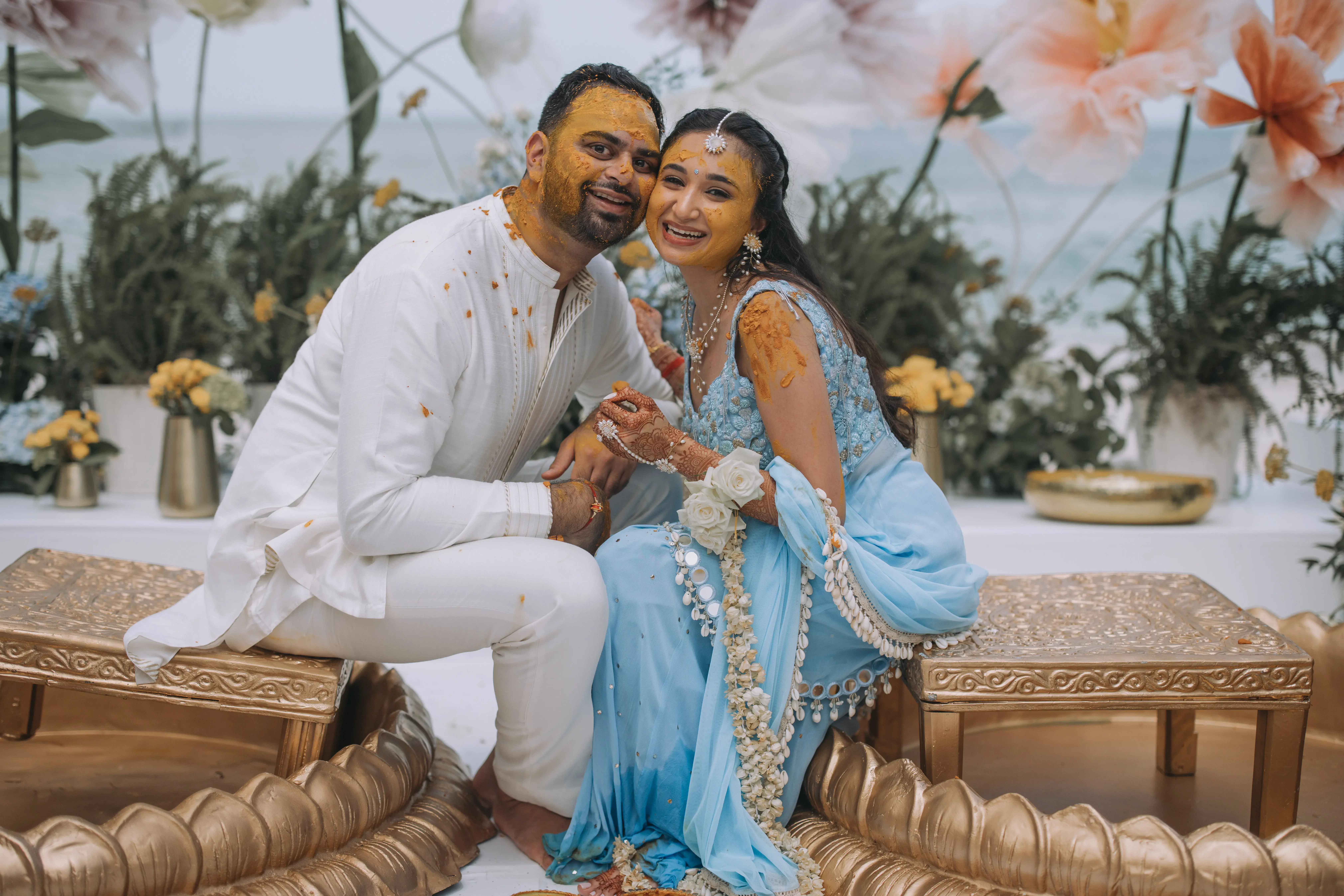 Each wedding event unfolded with thoughtful detail: a coastal-inspired welcome dinner, a poolside Haldi filled with laughter, a spirited Sangeet, and a stunning ceremony beneath a floral mandap, followed by a modern, black-and-white reception. Throughout, P.Taufiq Photography captured every moment with emotional depth and editorial flair—from candid joy to artful portraits.