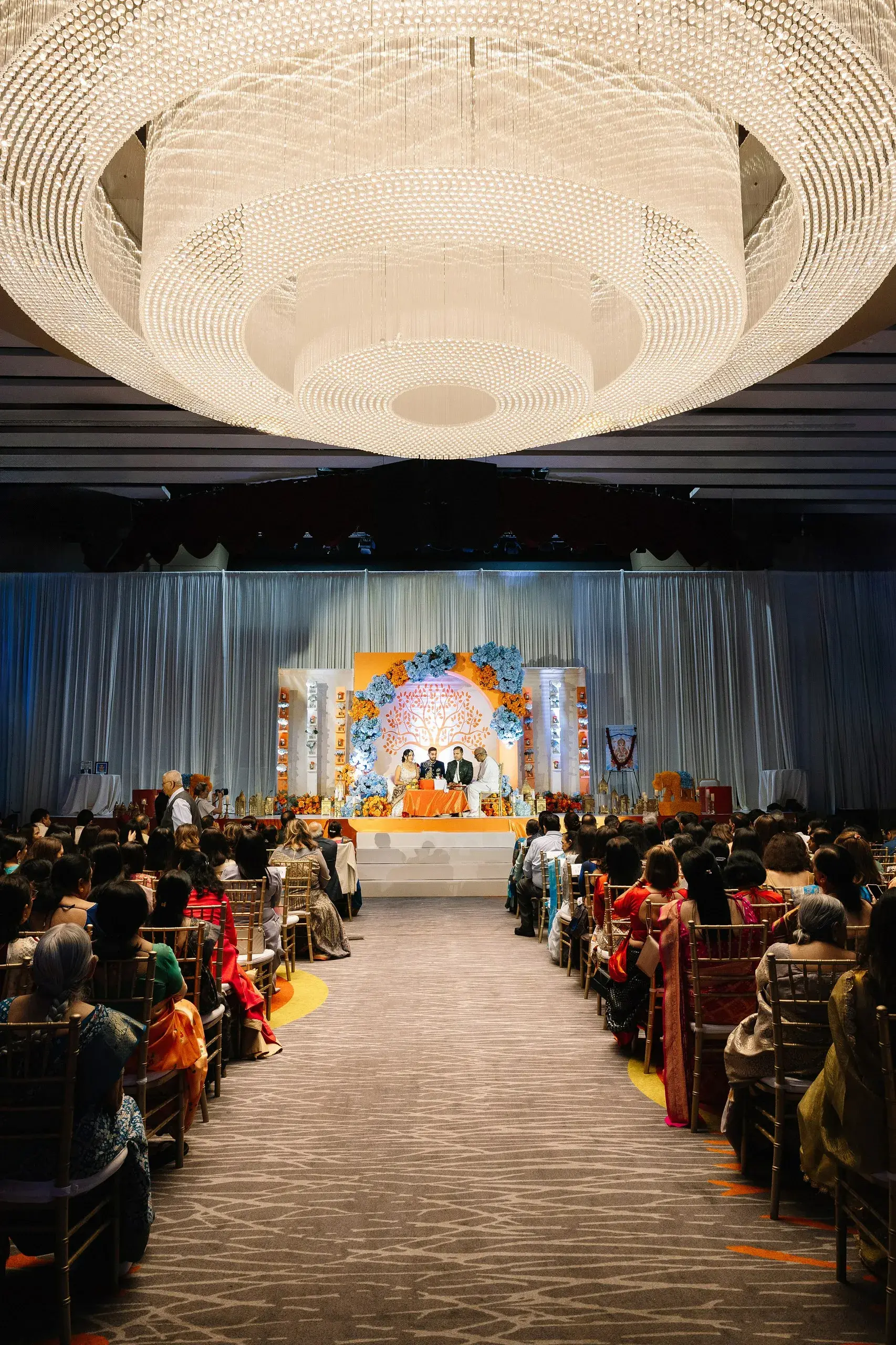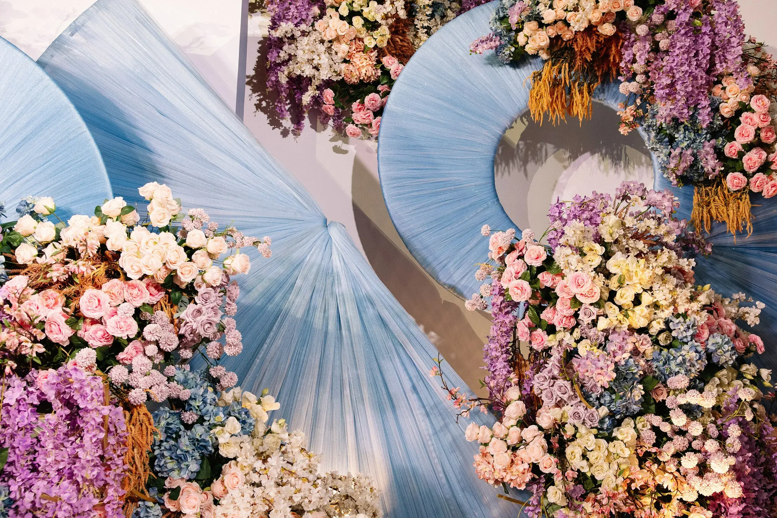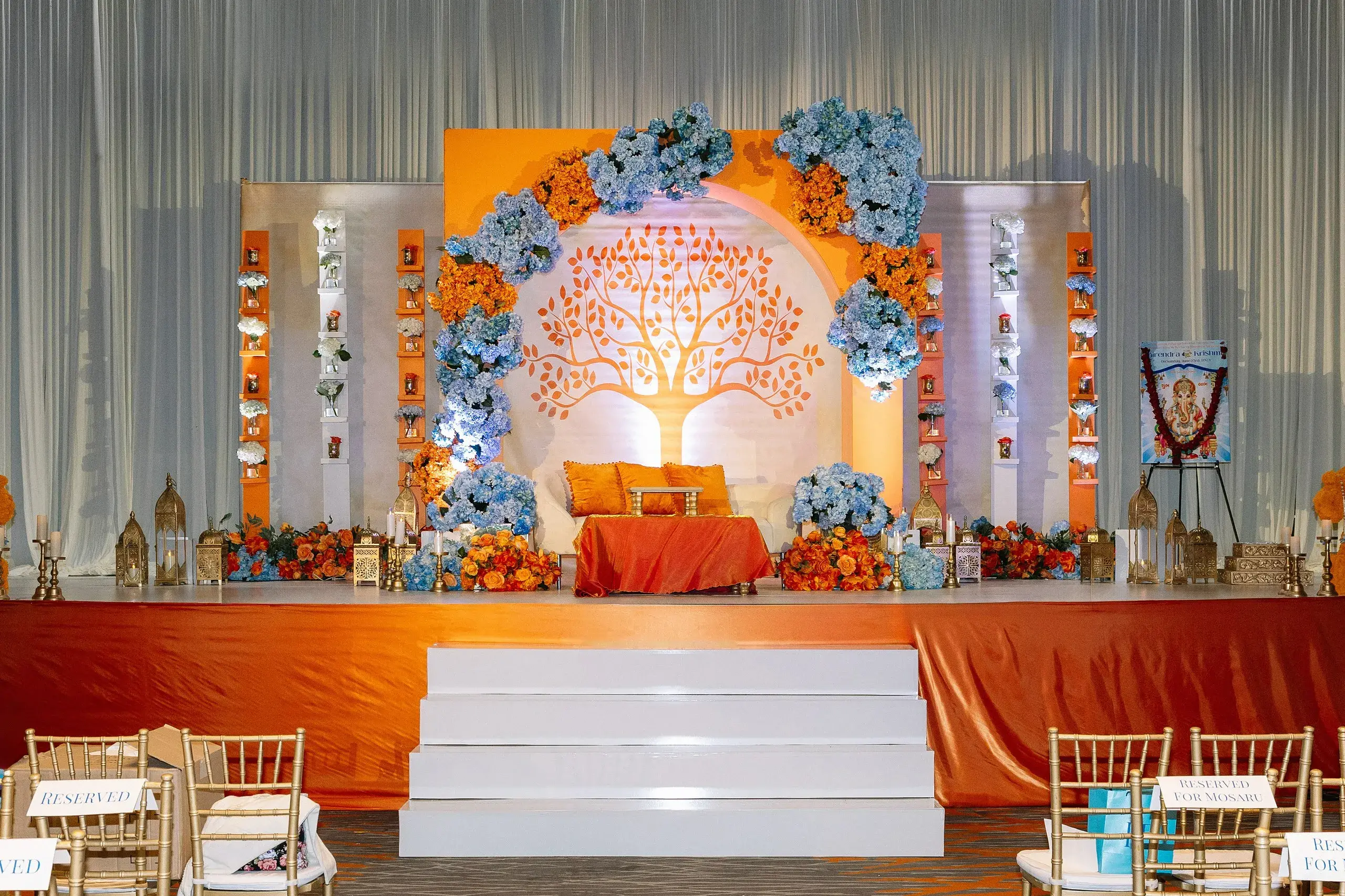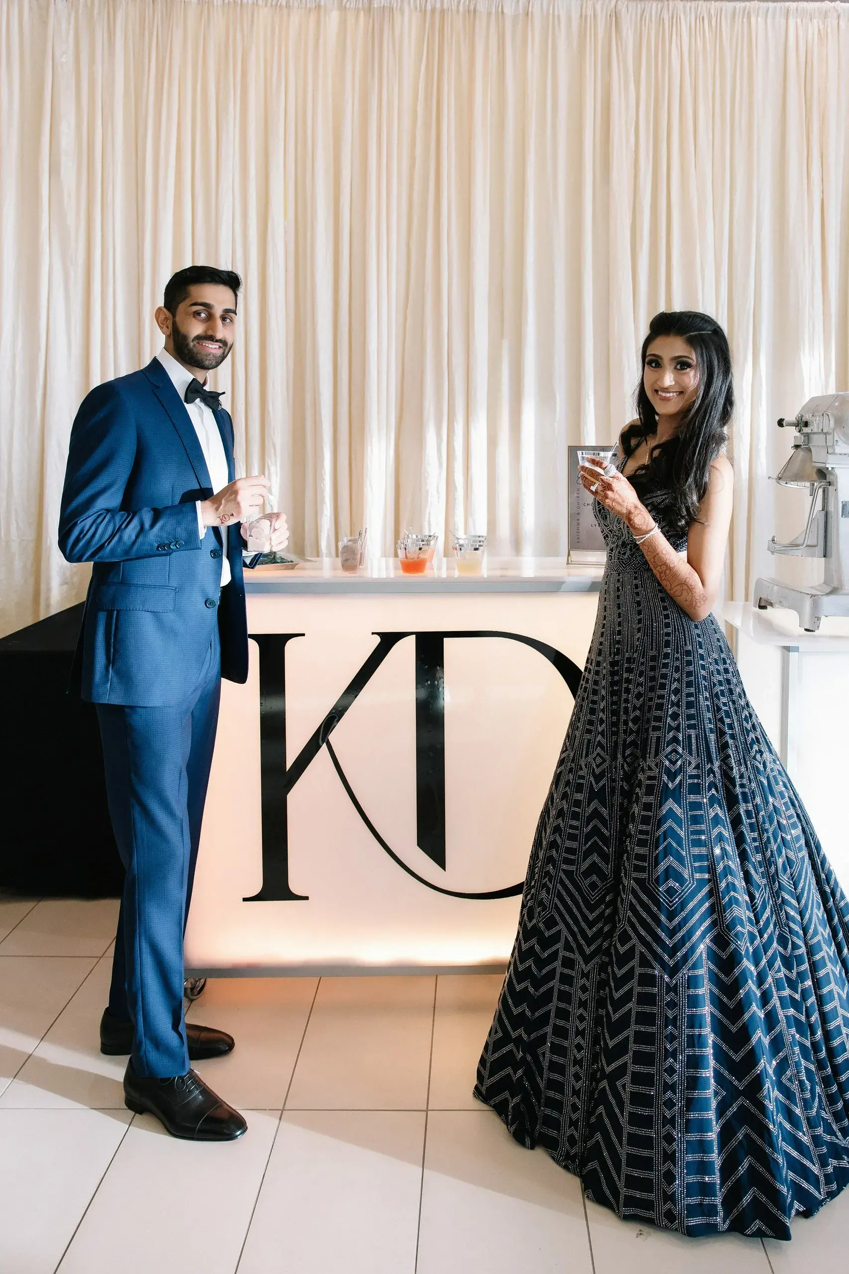 Their wedding ceremony was an elegant fusion of tradition and modernity. Set against tones of sage, muted blues, and soft neutrals, the mandap and floral installations honored South Asian rituals while feeling refreshingly contemporary and timeless.
