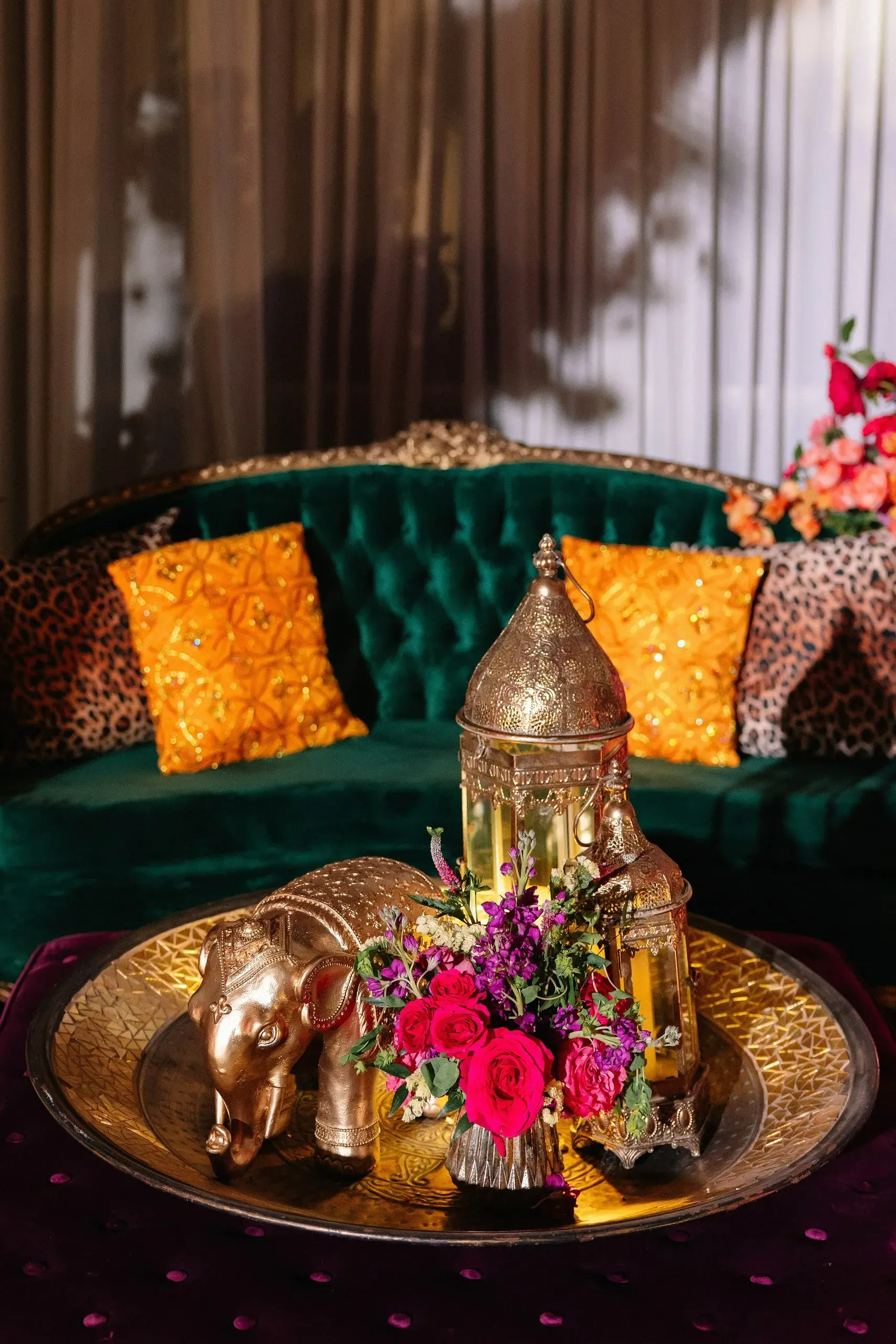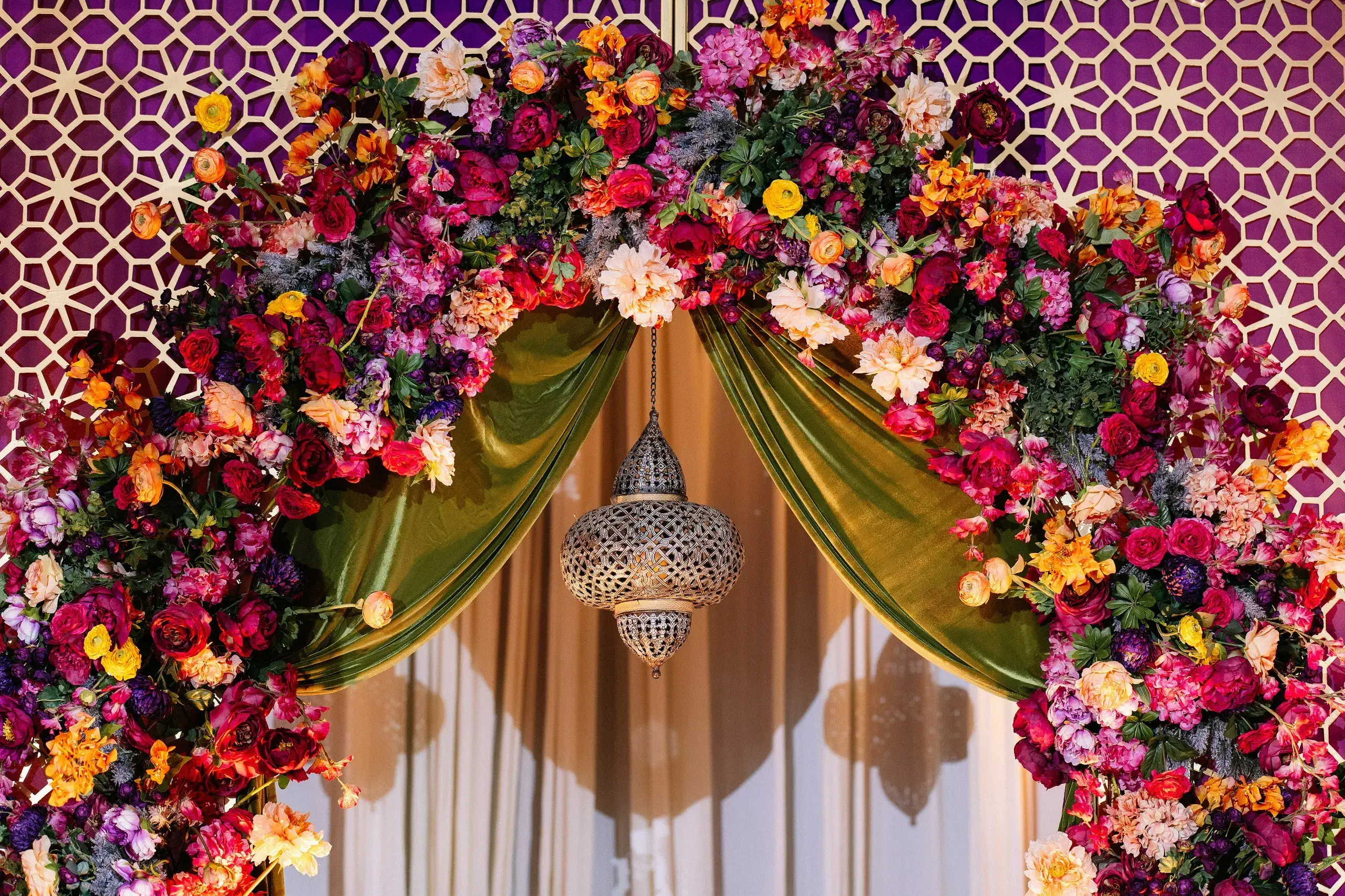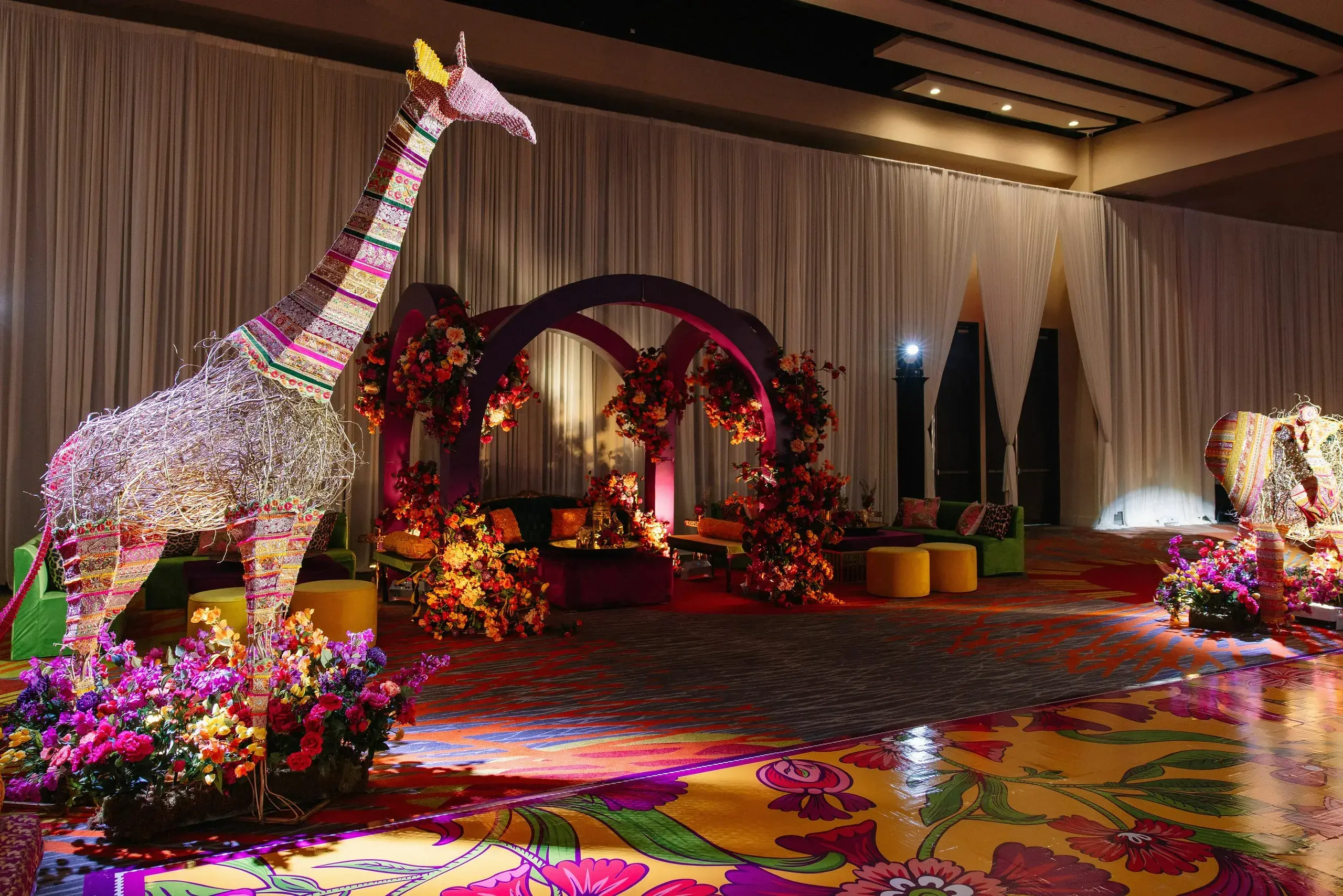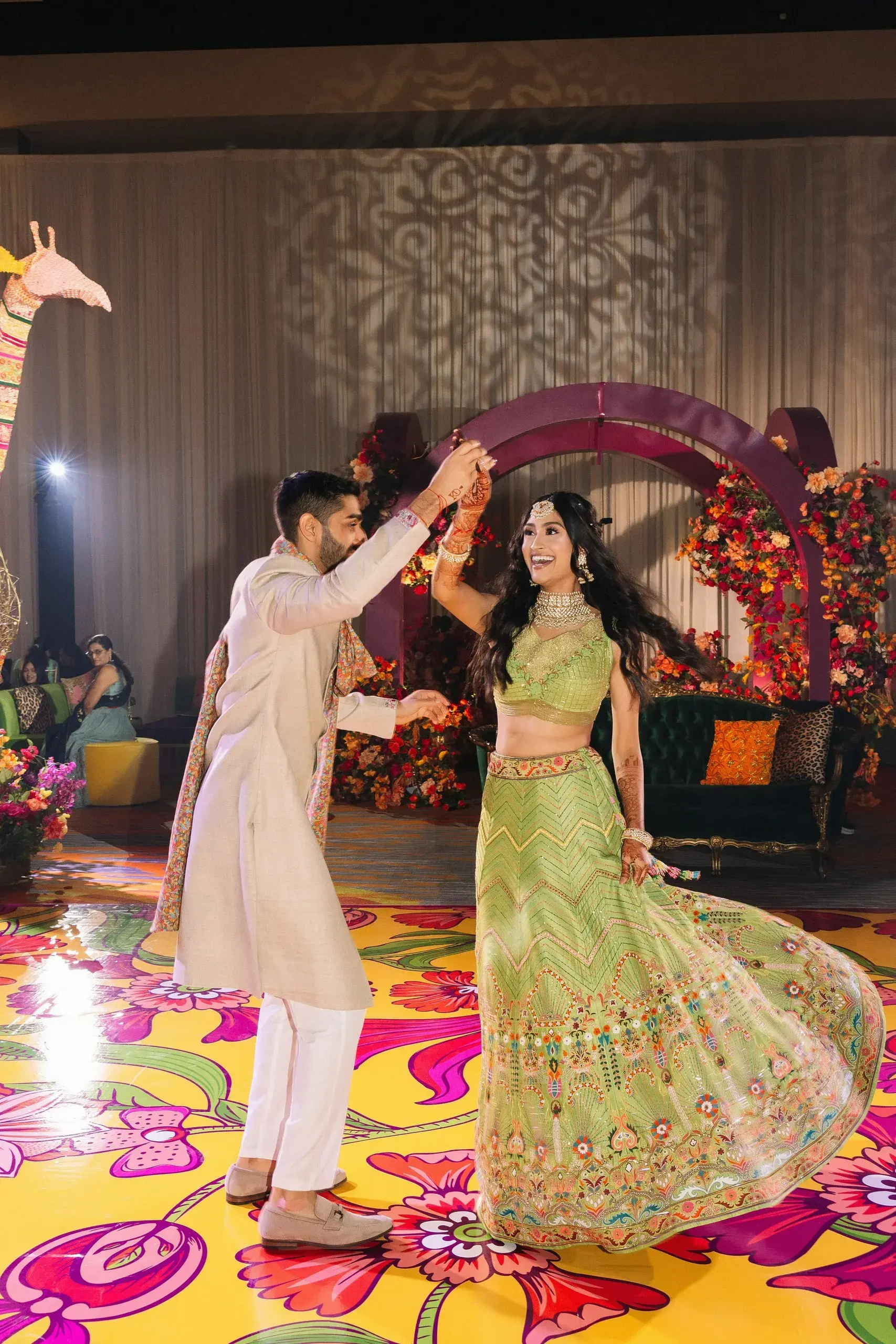 The next evening was the Mehndi, which merged South Asian heritage with high-fashion inspiration. Drawing cues from the Dior gateway to India fashion show, the celebration featured bold colors, intricate floral artistry, and modern design elements that highlighted the bride’s fashion-forward vision while staying rooted in cultural tradition.