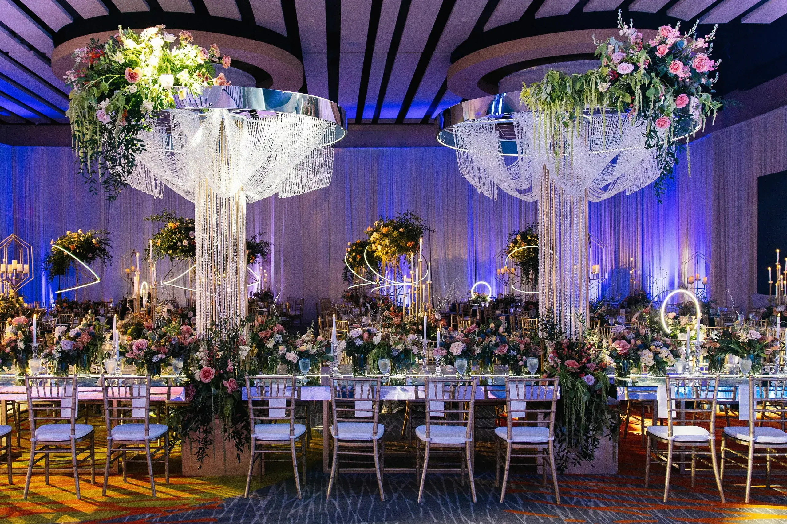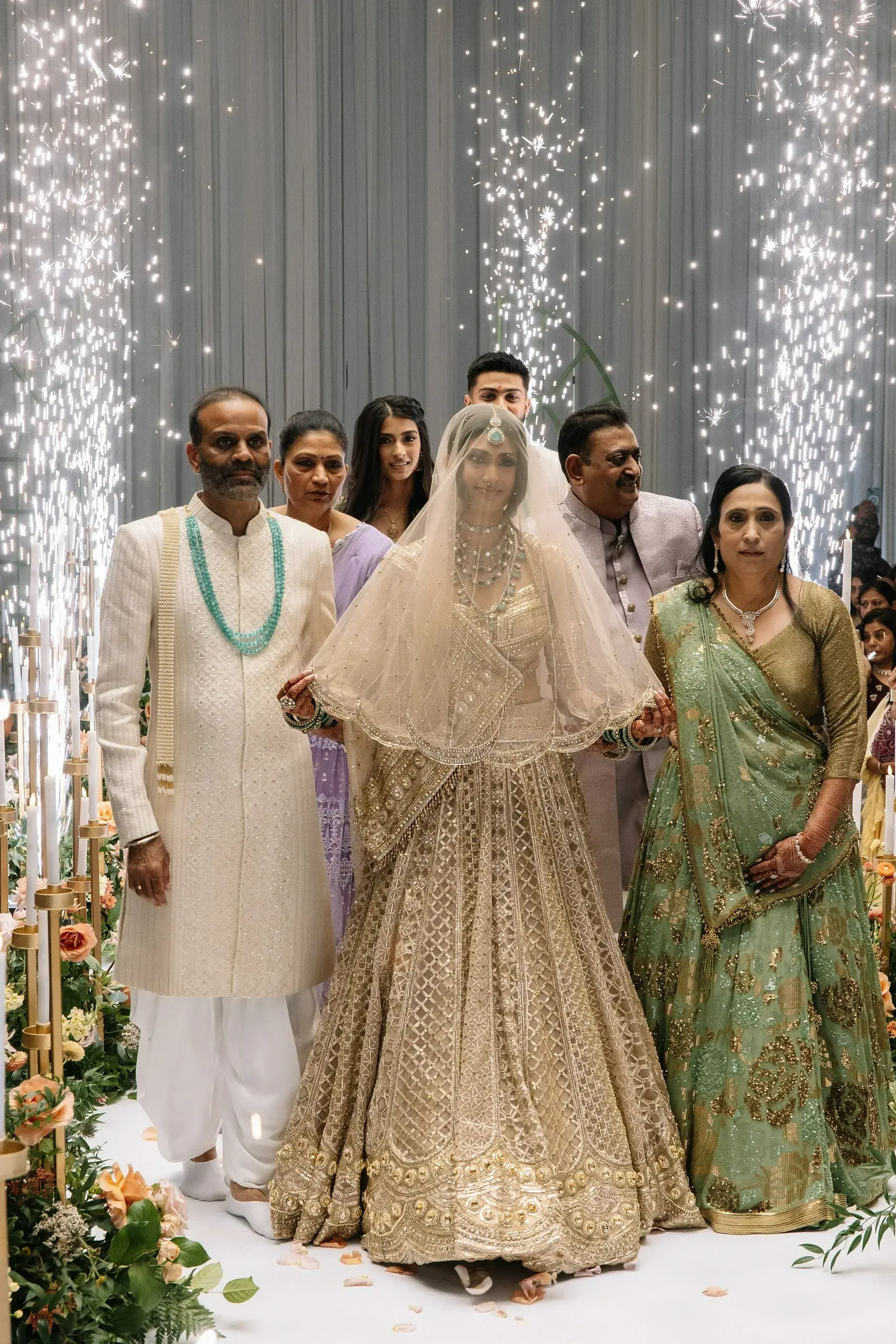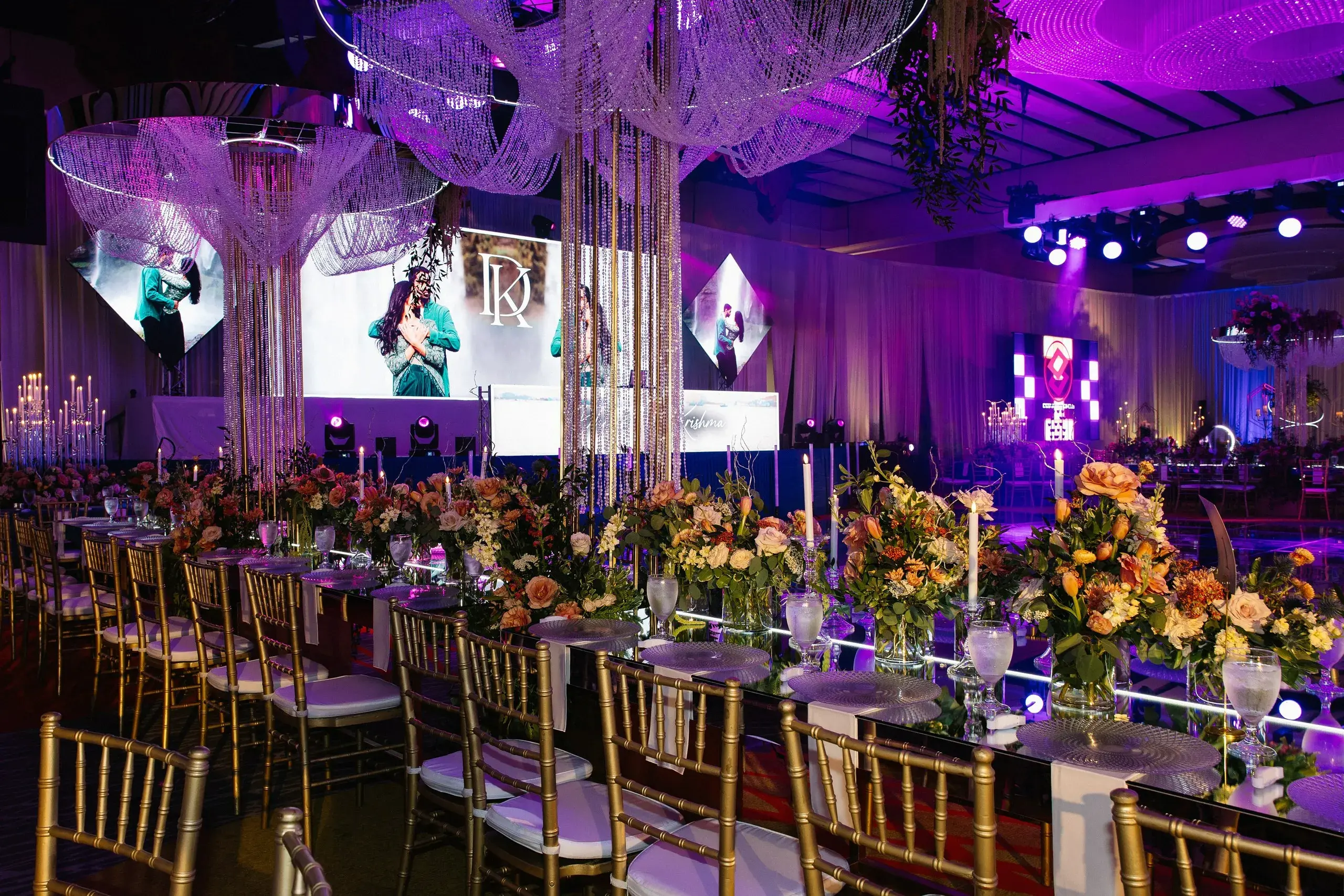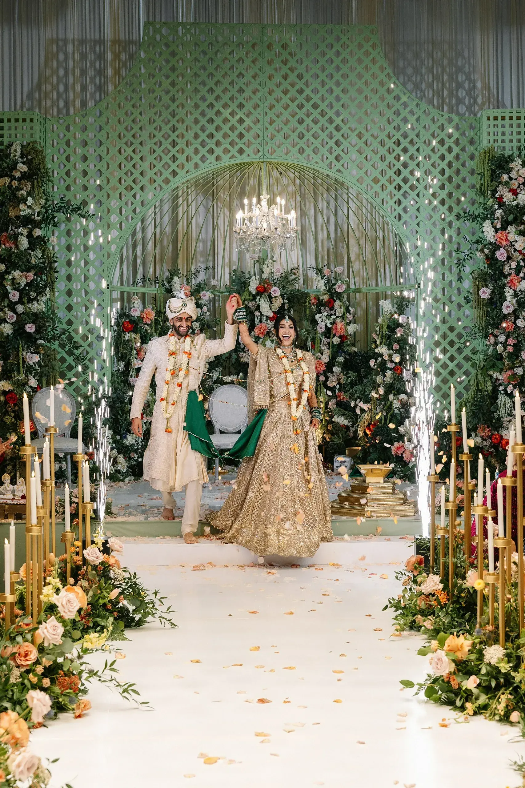 The weekend concluded with a dazzling Reception, a celebration that married the couple’s love for both romance and nightlife. Designed as a “chandelier nightclub meets romantic garden,” the evening paired lush florals with dramatic lighting, evoking the energy of an EDM concert while preserving the elegance of a grand family gathering. The night overflowed with food, dancing, and joy as two families came together to celebrate the union.