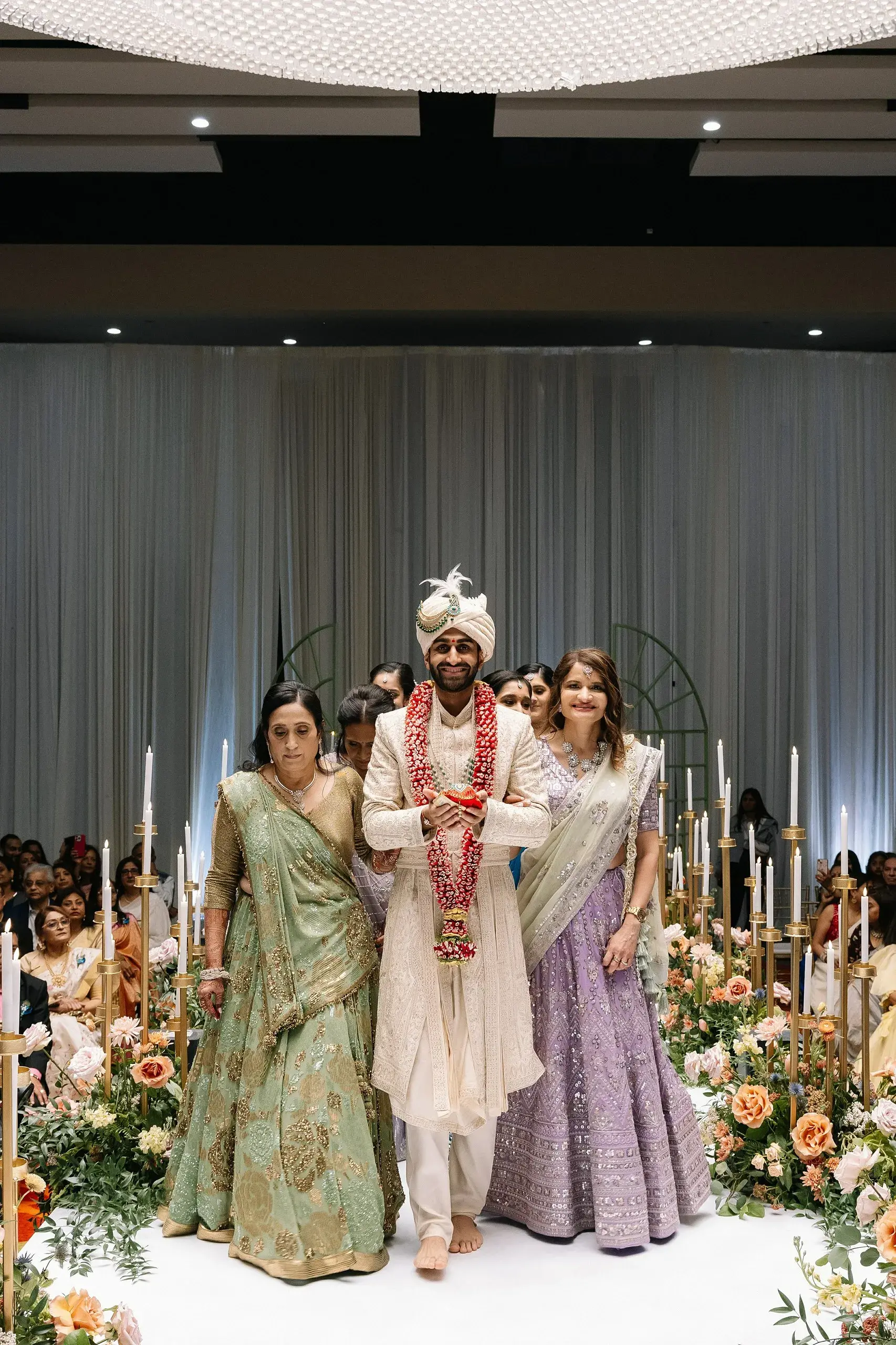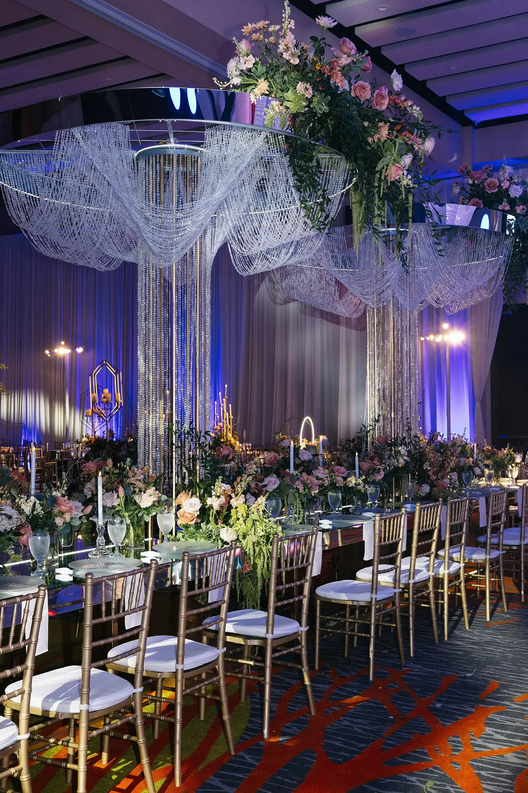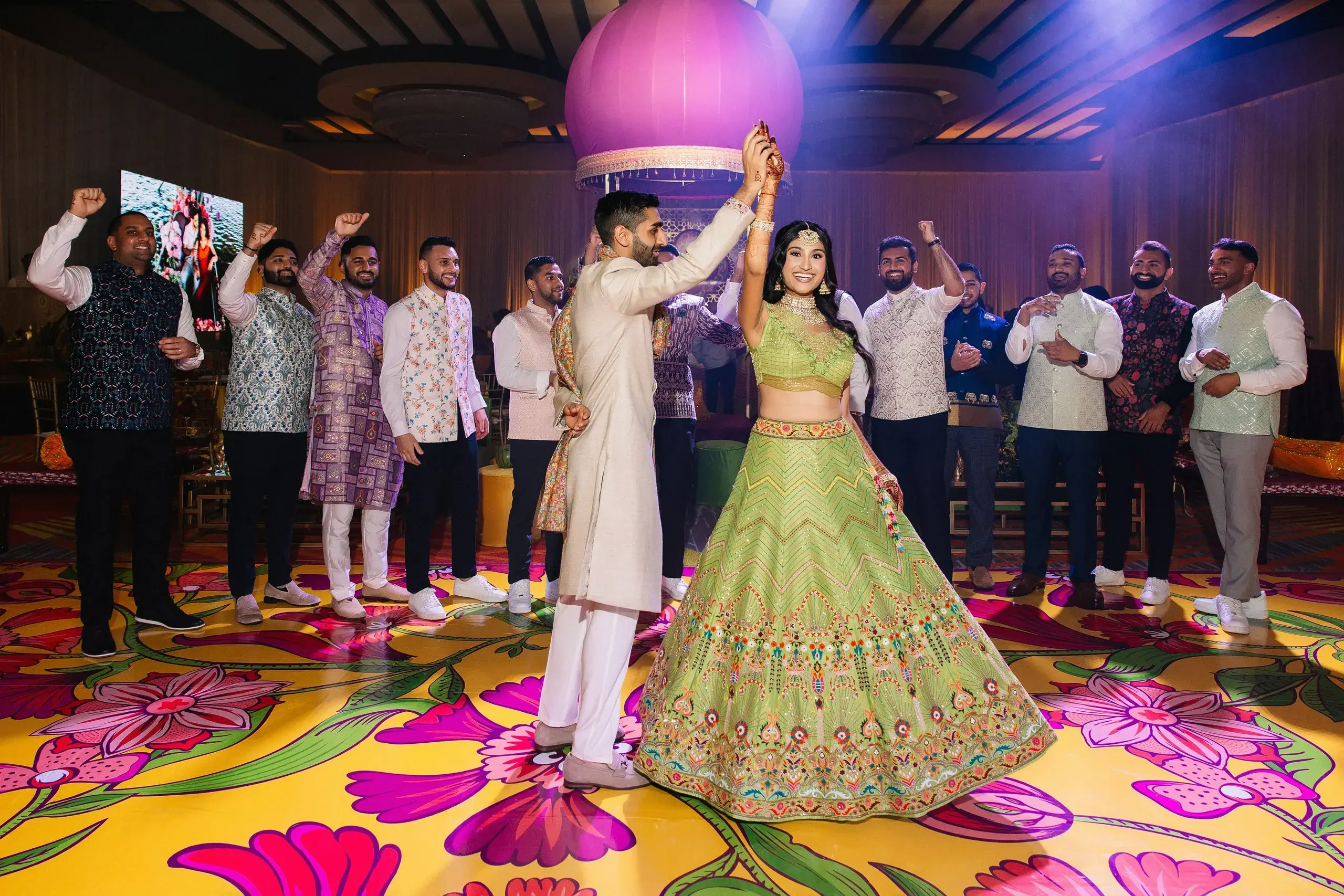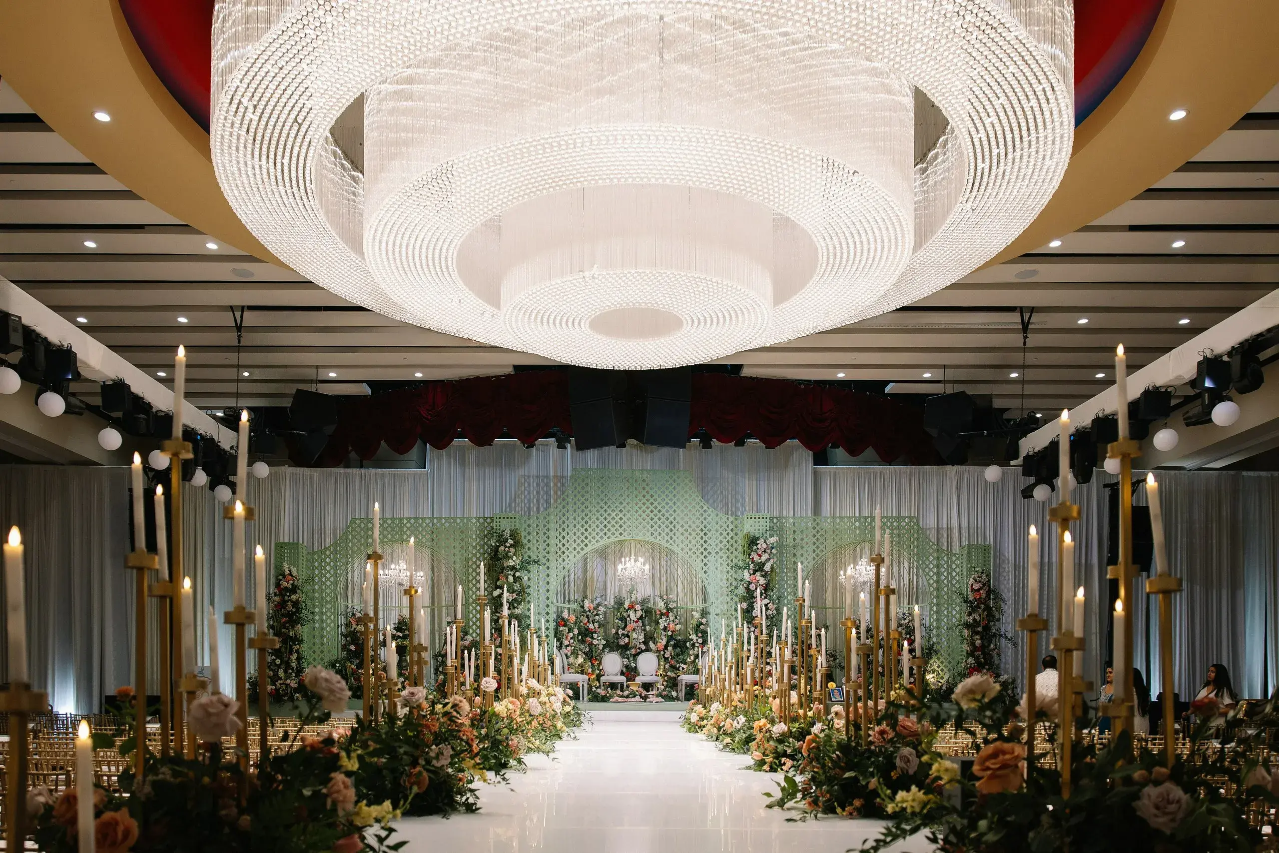 The weekend concluded with a dazzling Reception, a celebration that married the couple’s love for both romance and nightlife. Designed as a “chandelier nightclub meets romantic garden,” the evening paired lush florals with dramatic lighting, evoking the energy of an EDM concert while preserving the elegance of a grand family gathering. The night overflowed with food, dancing, and joy as two families came together to celebrate the union.