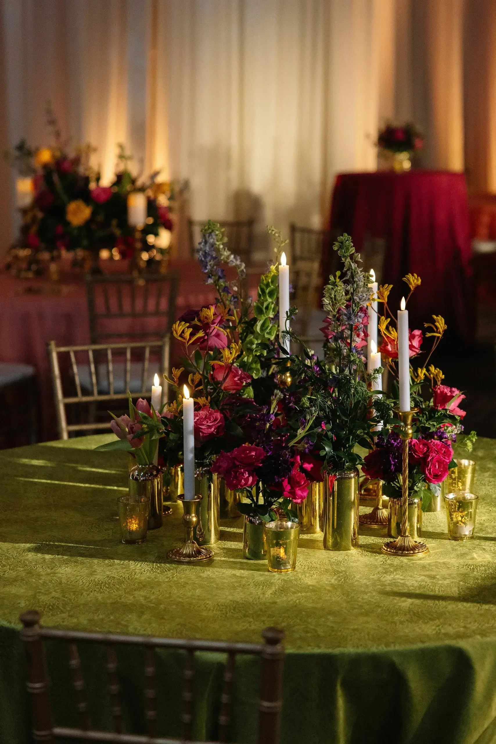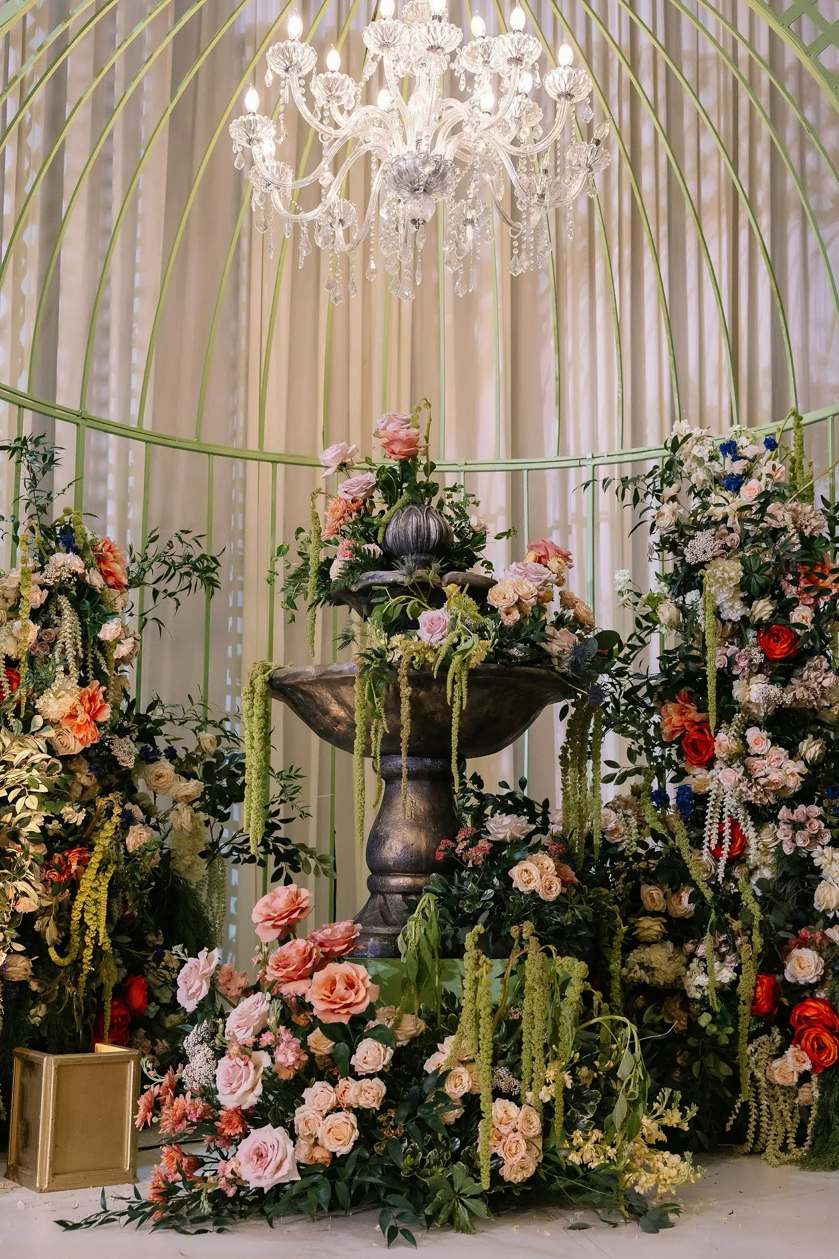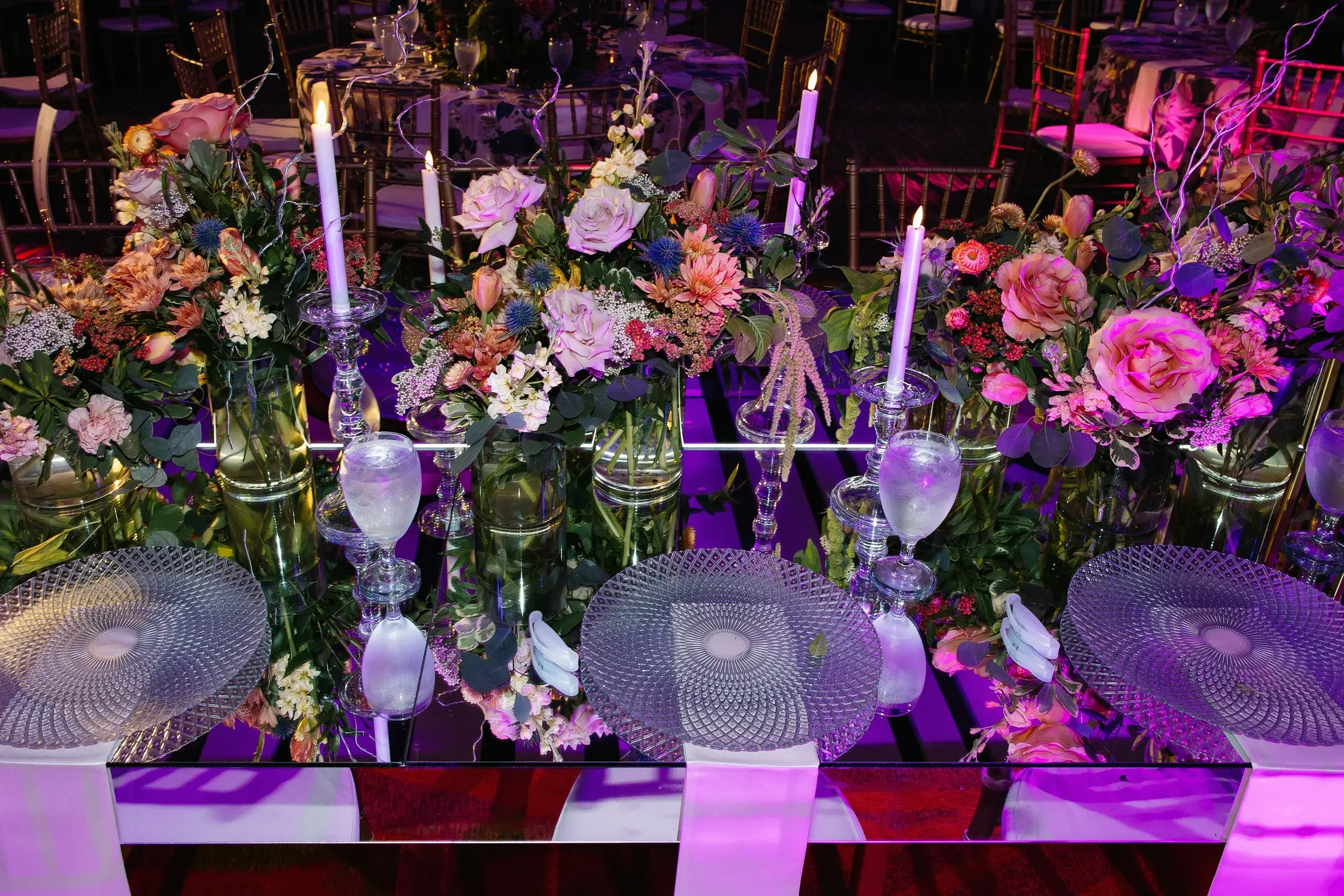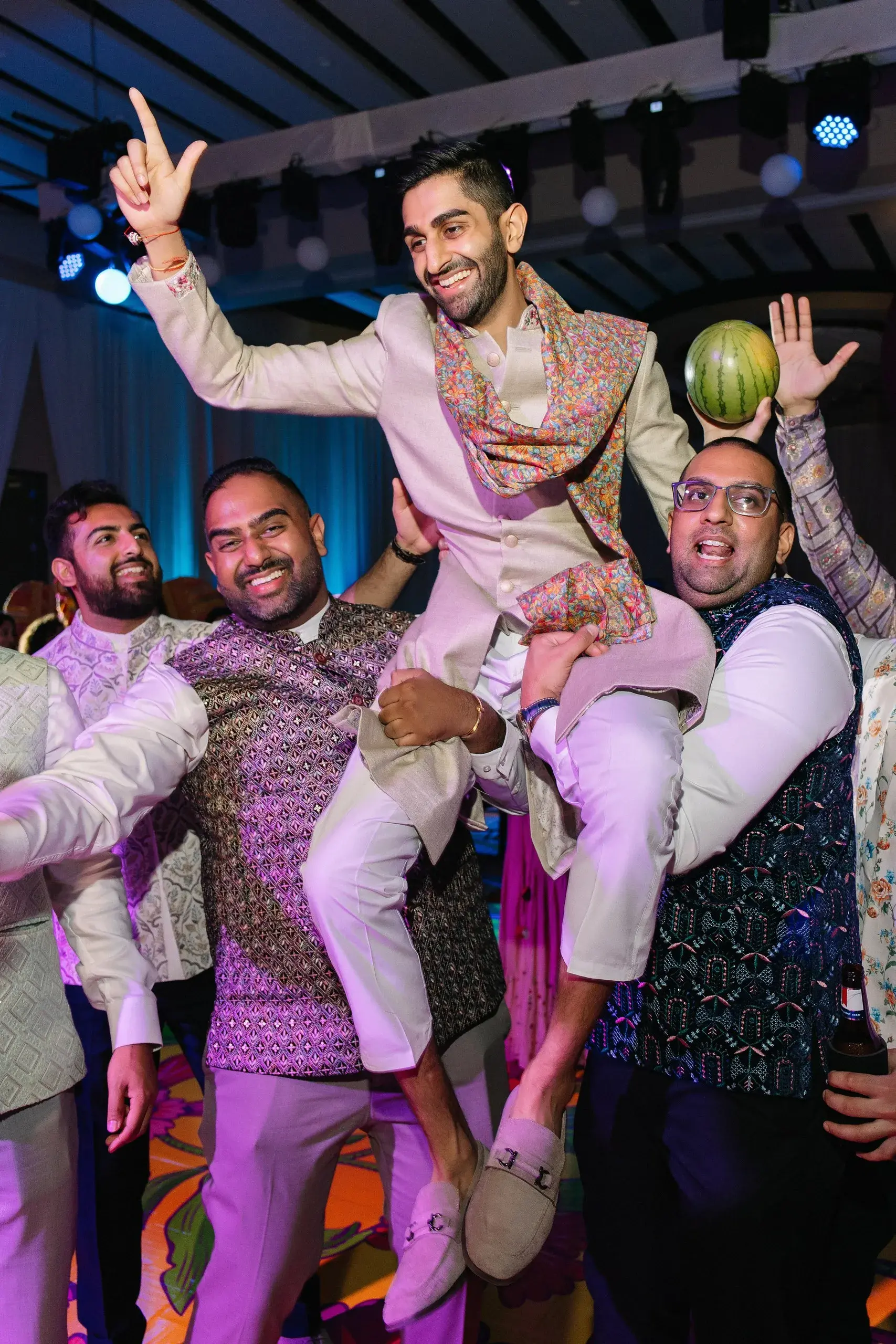 The weekend concluded with a dazzling Reception, a celebration that married the couple’s love for both romance and nightlife. Designed as a “chandelier nightclub meets romantic garden,” the evening paired lush florals with dramatic lighting, evoking the energy of an EDM concert while preserving the elegance of a grand family gathering. The night overflowed with food, dancing, and joy as two families came together to celebrate the union.
