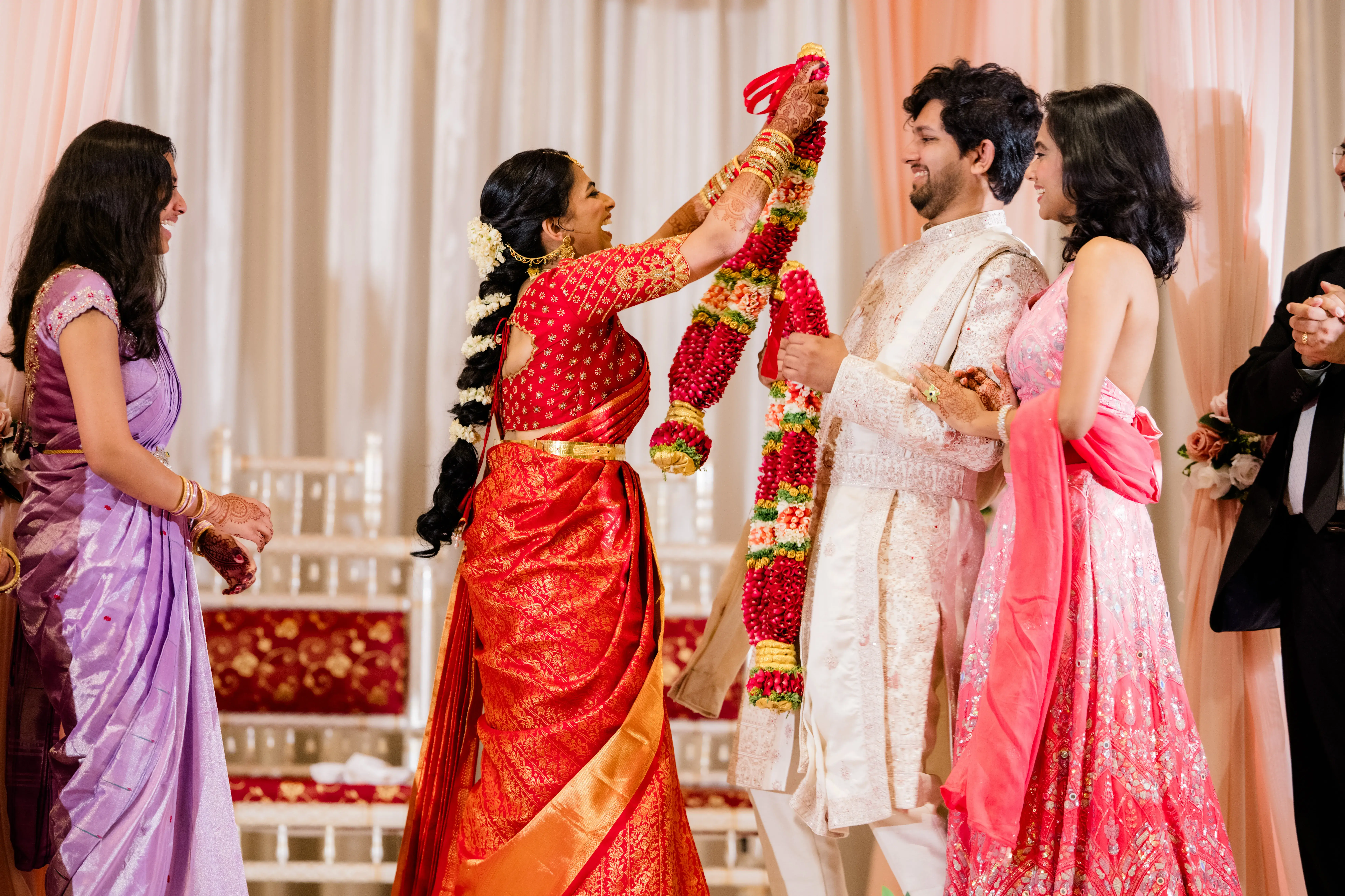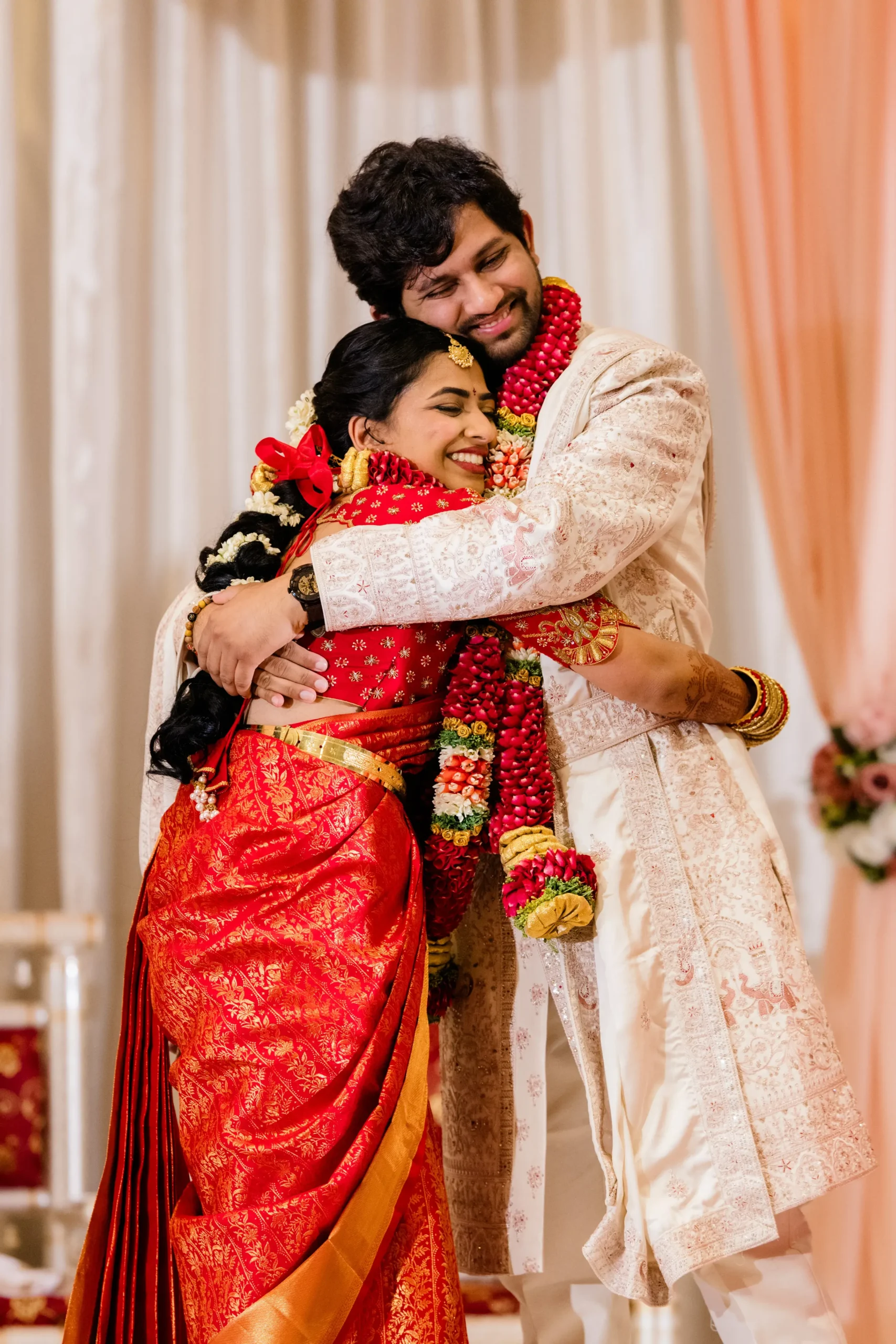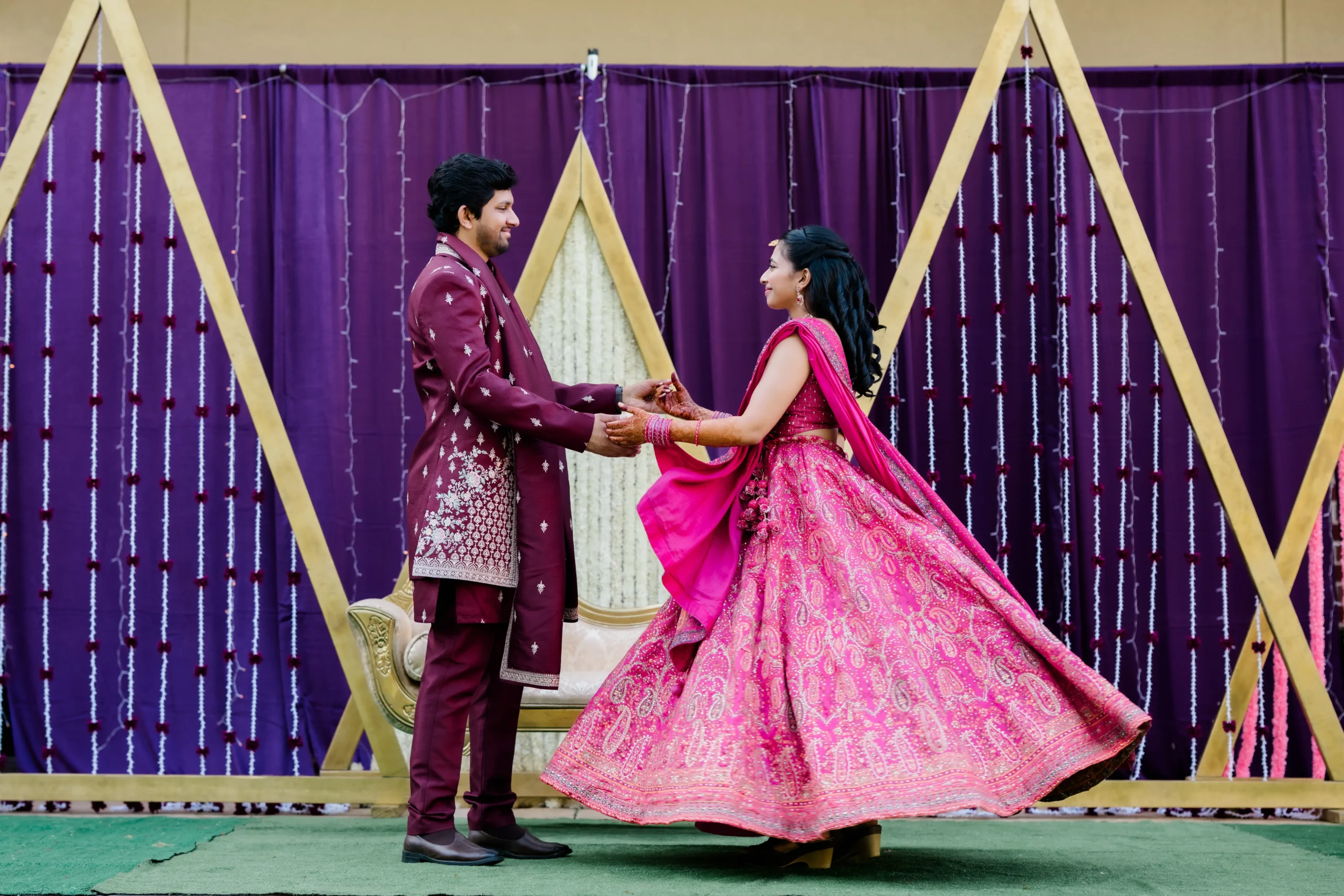 Their wedding was a celebration of this beautiful journey, a tapestry woven with traditions, emotions, and joy. Friends and family flew in from across the U.S. and India, filling every moment with blessings and cheer. The festivities were a perfect harmony of cultures: the vibrant colors of Smera’s Telugu roots blending seamlessly with the spirited rituals of Anshul’s Haryanvi heritage. From the lively sangeet to the heartfelt vows, every detail spoke of love, laughter, and destiny fulfilled.