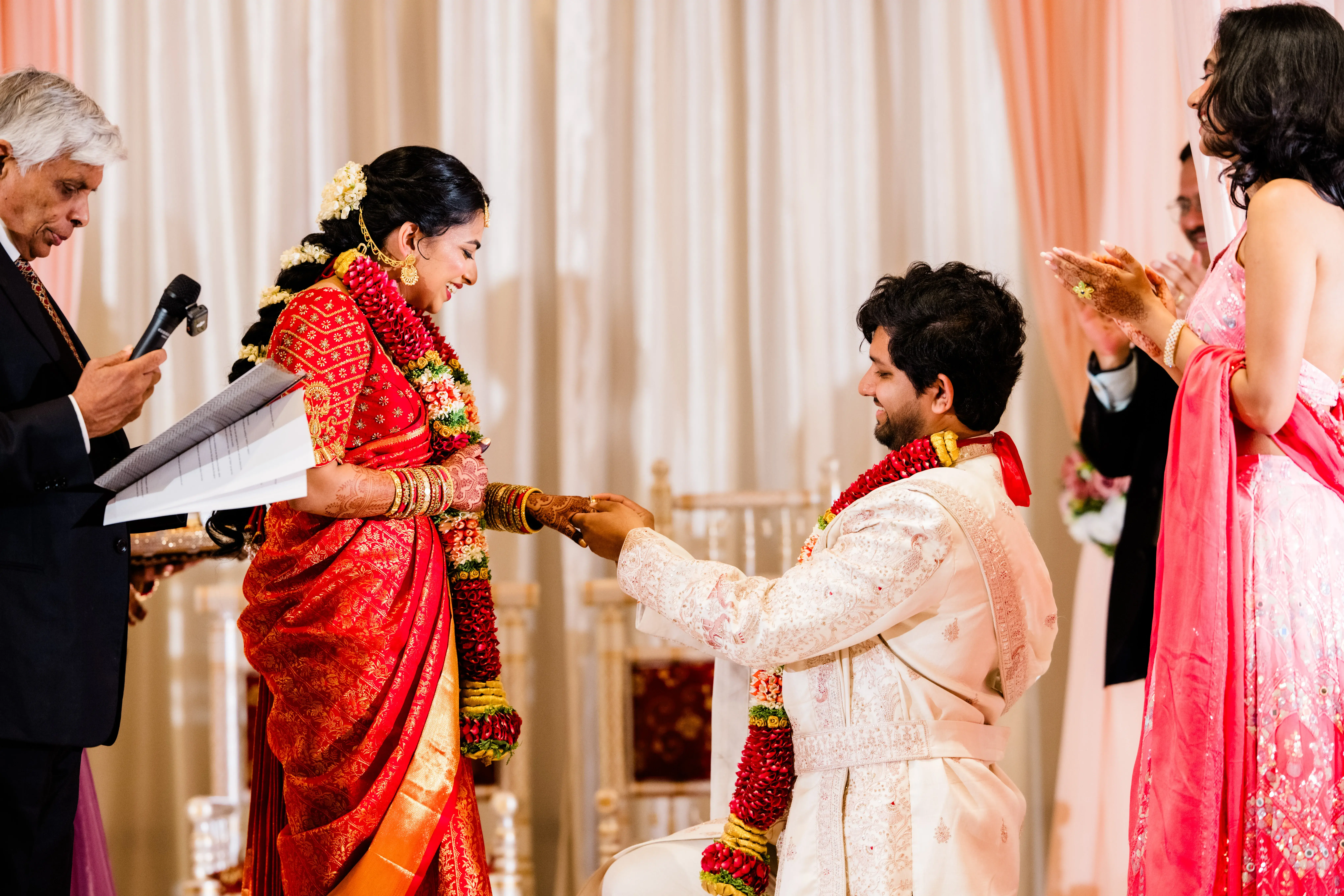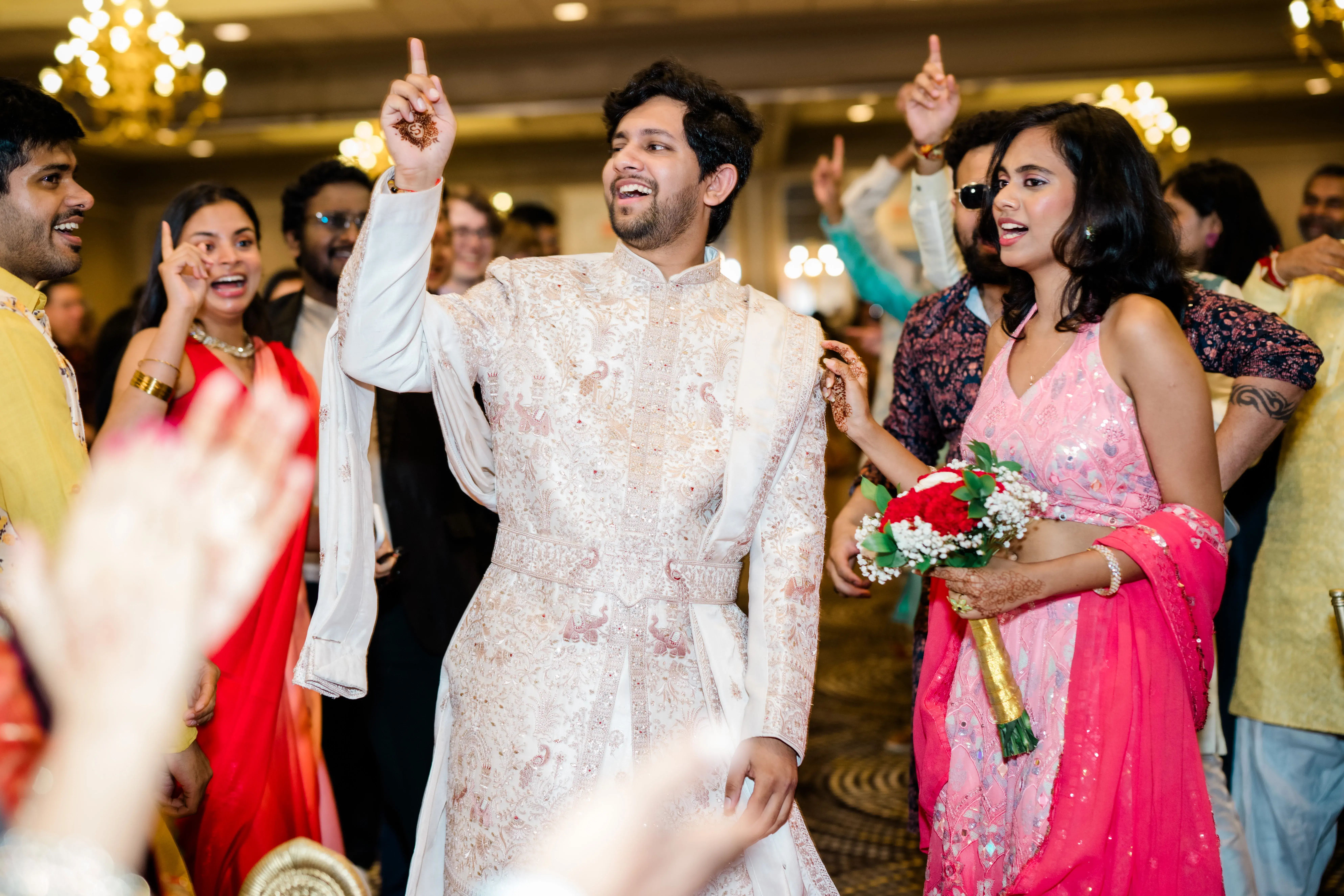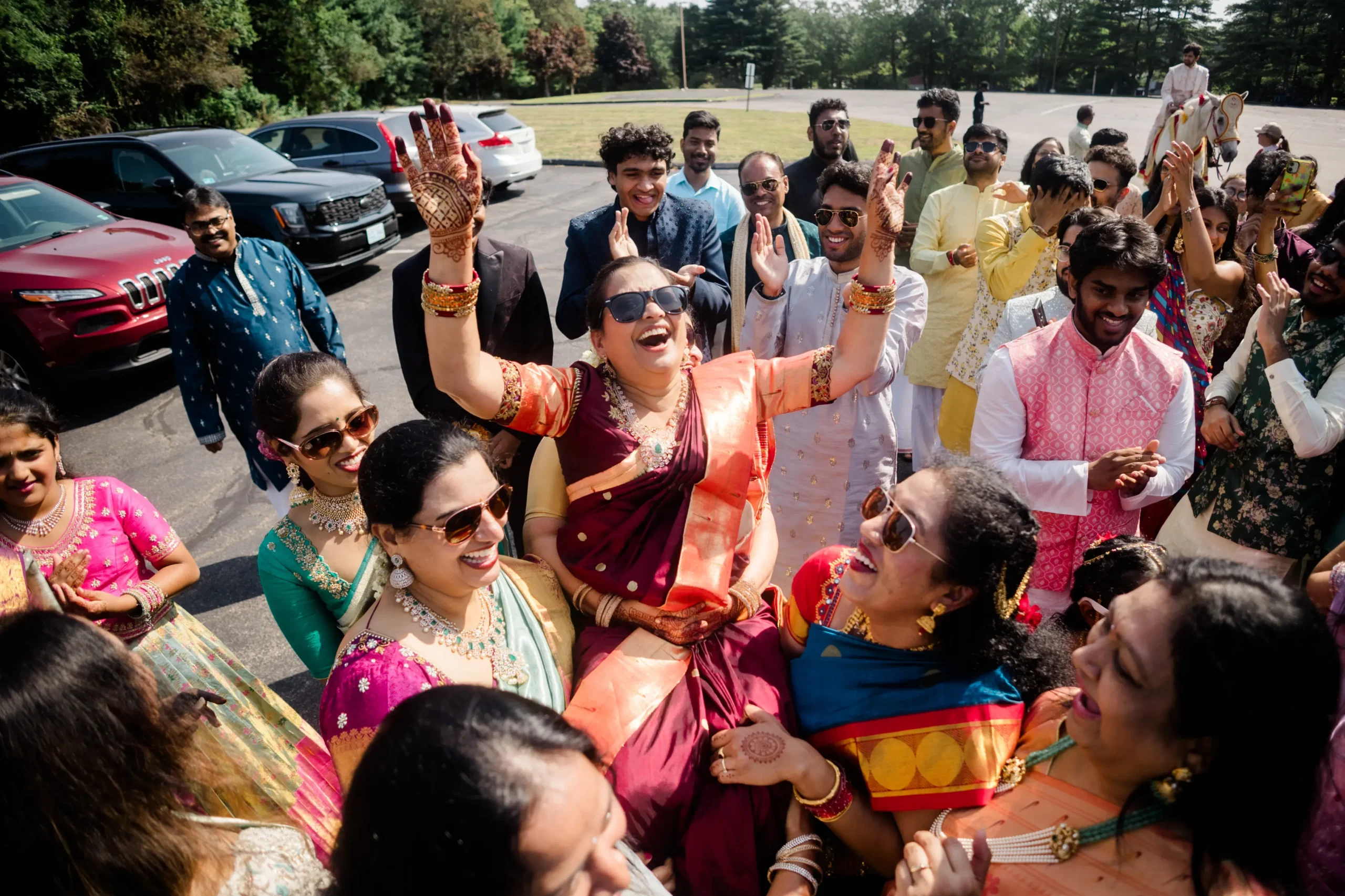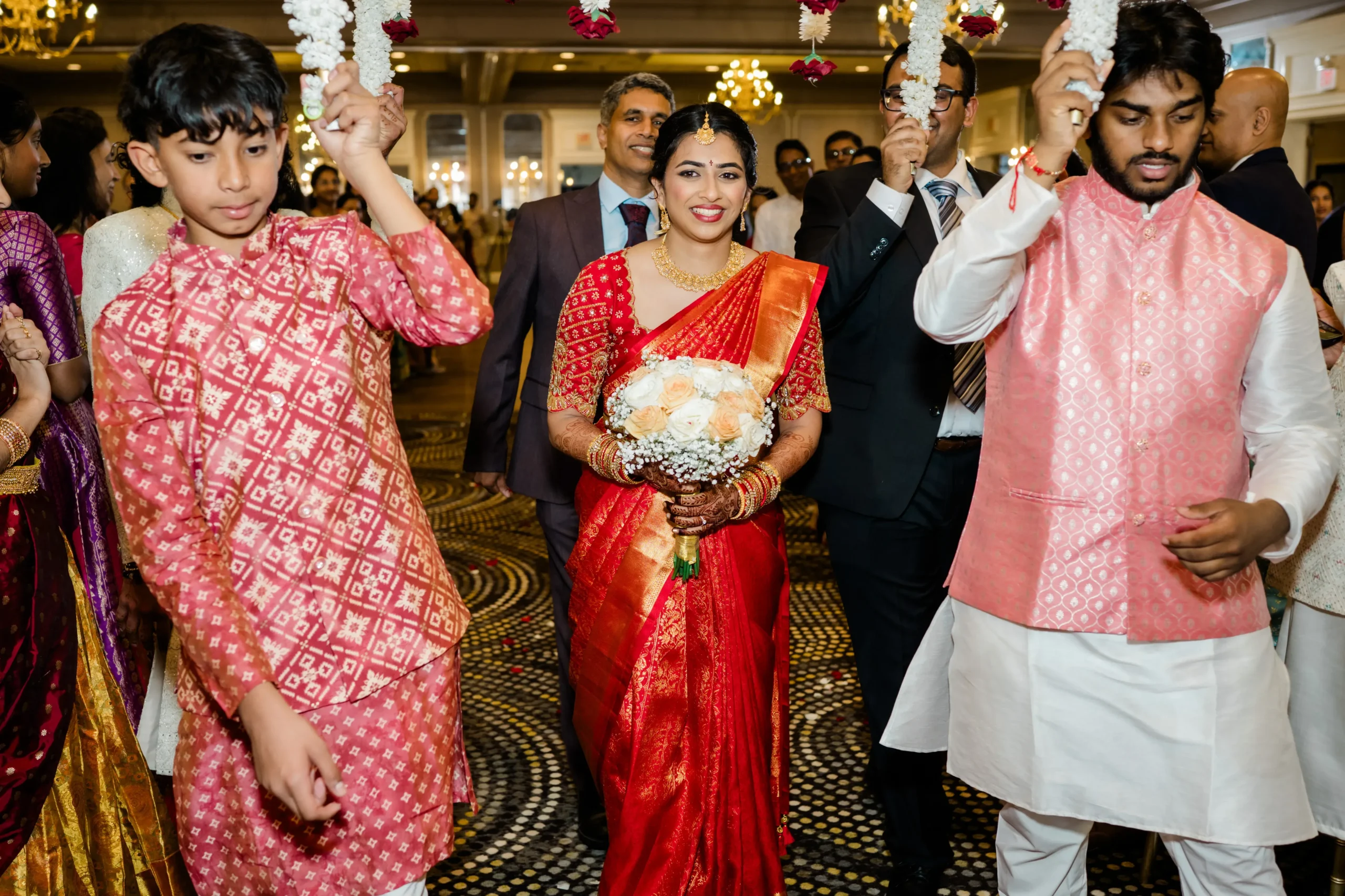 Their wedding was a celebration of this beautiful journey, a tapestry woven with traditions, emotions, and joy. Friends and family flew in from across the U.S. and India, filling every moment with blessings and cheer. The festivities were a perfect harmony of cultures: the vibrant colors of Smera’s Telugu roots blending seamlessly with the spirited rituals of Anshul’s Haryanvi heritage. From the lively sangeet to the heartfelt vows, every detail spoke of love, laughter, and destiny fulfilled.