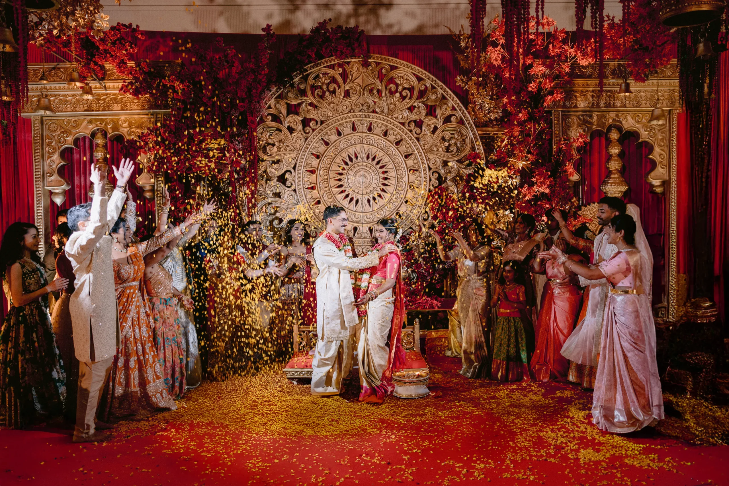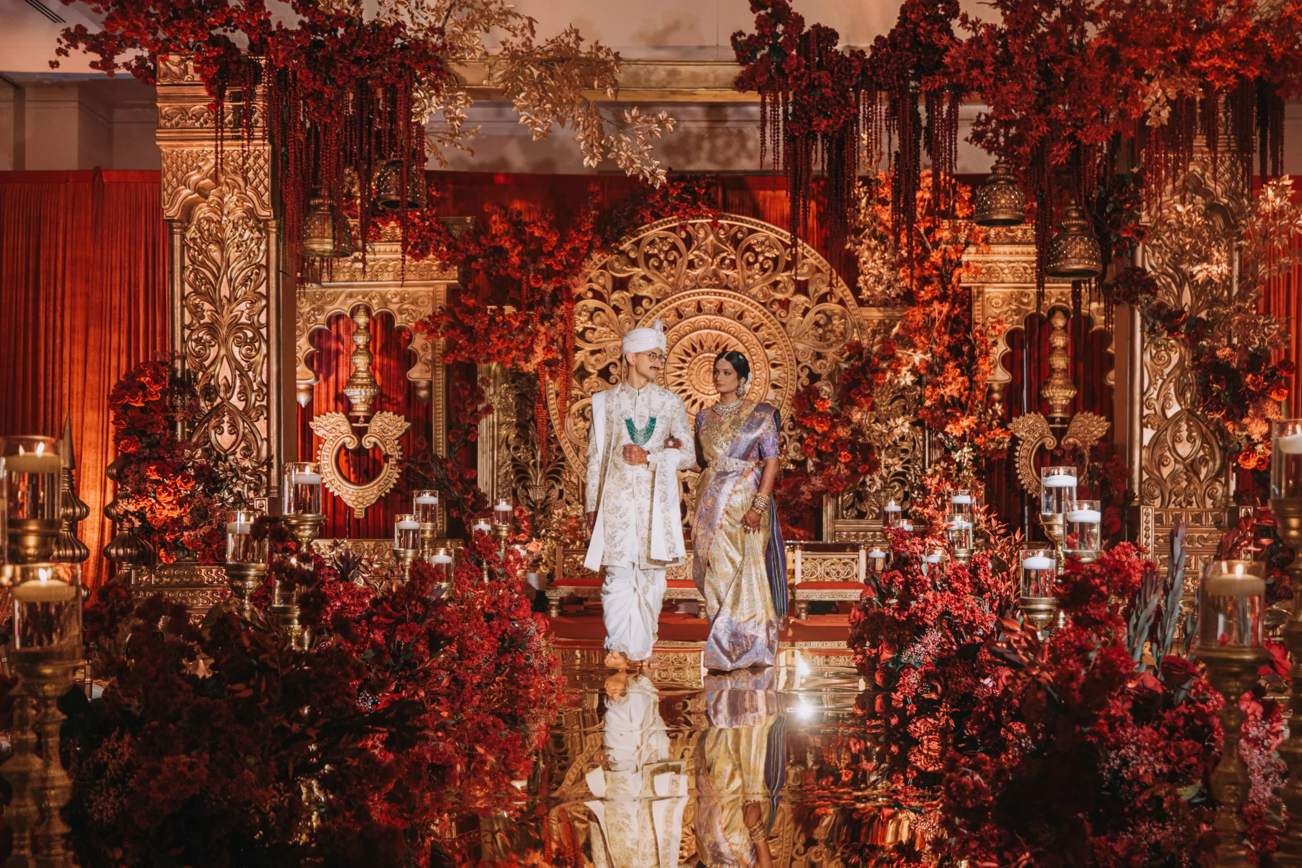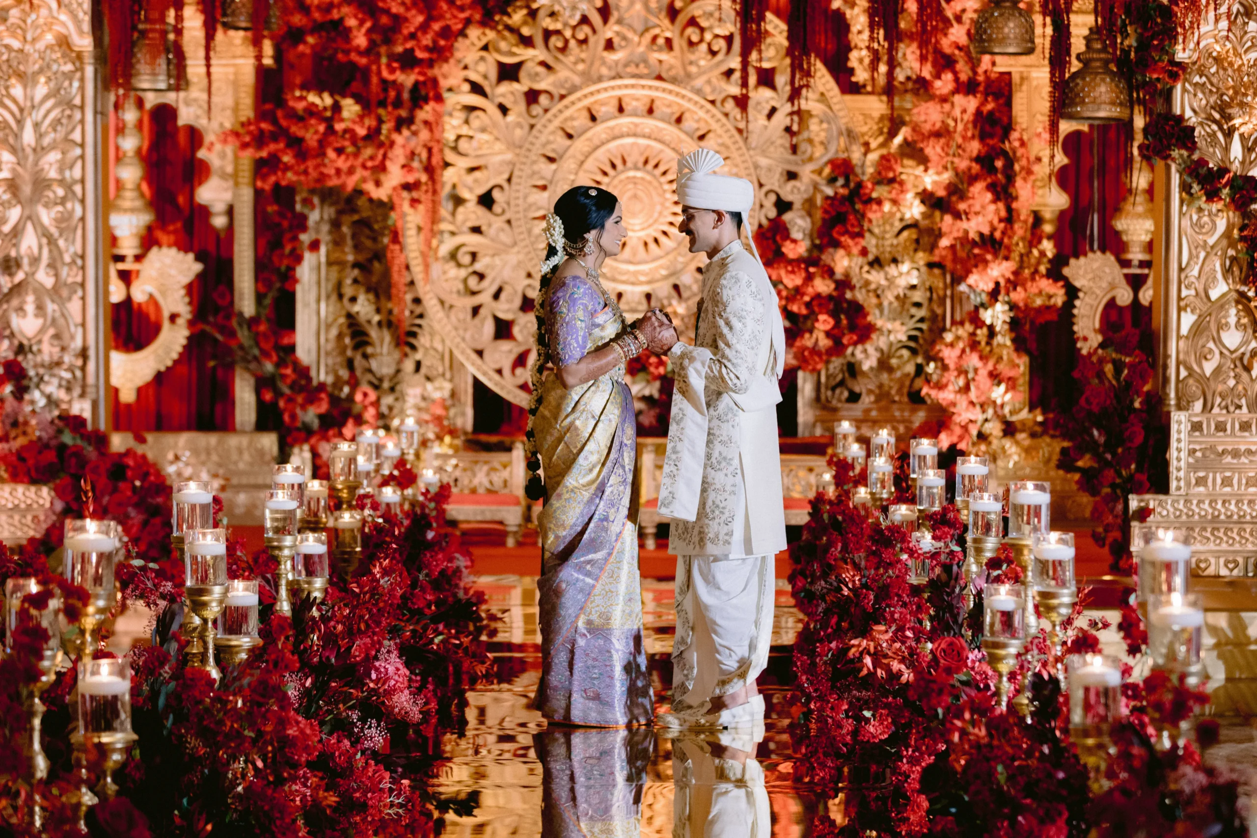 The wedding ceremony unfolded in a floral-draped ballroom mandap, symbolizing unity and authenticity. A deeply emotional highlight was the first look, where Jay surprised Swetha with a handwritten letter, a private moment beautifully preserved through the lens.
